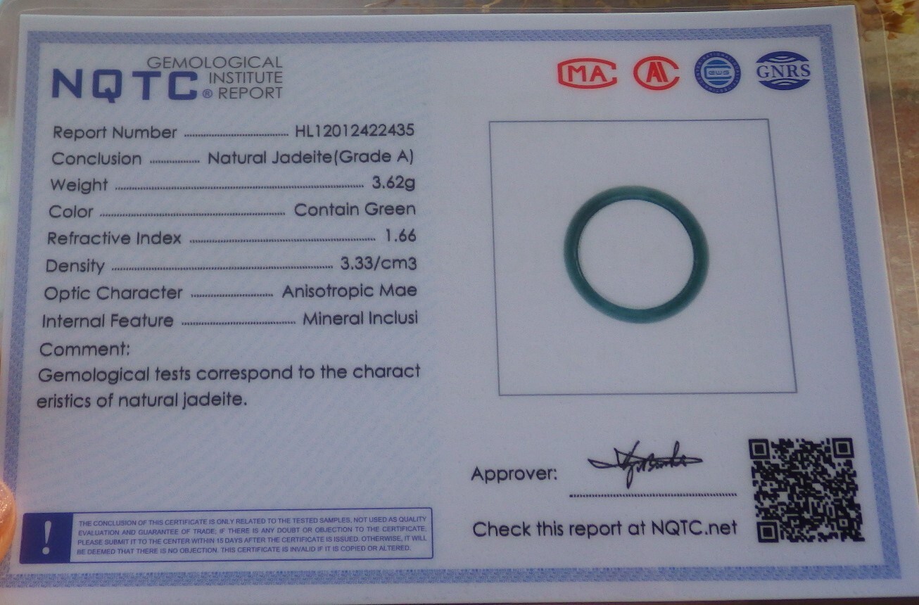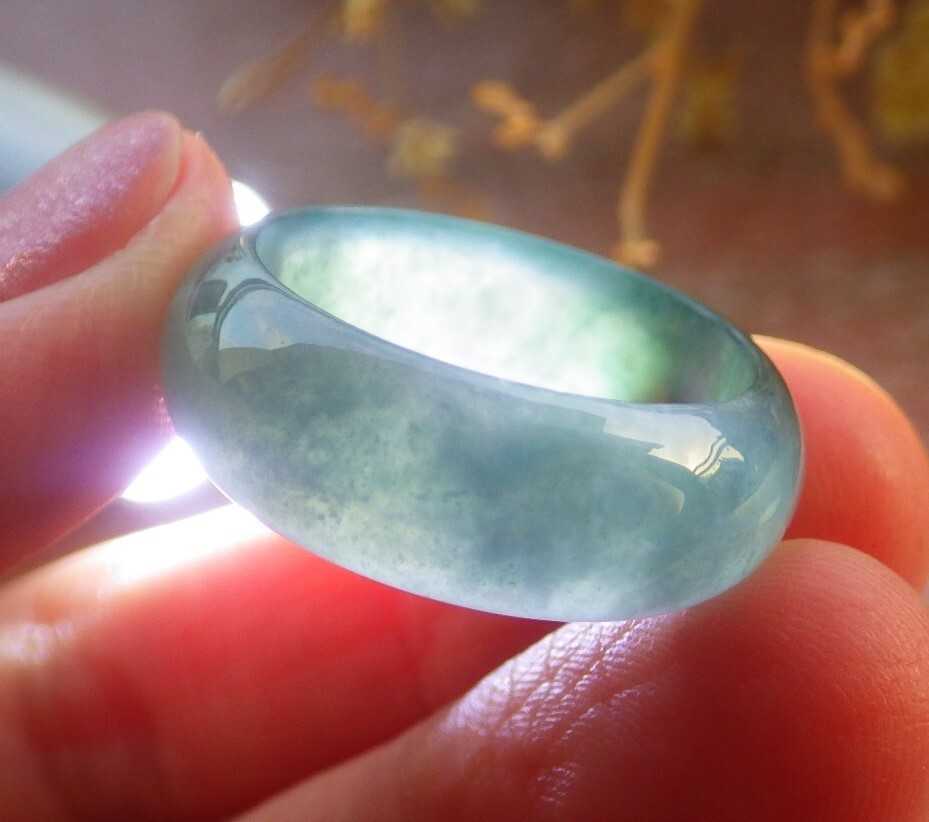 Video Certified Green Natural A JADE Jadeite Circle RING USA. 7.75 696808 AS