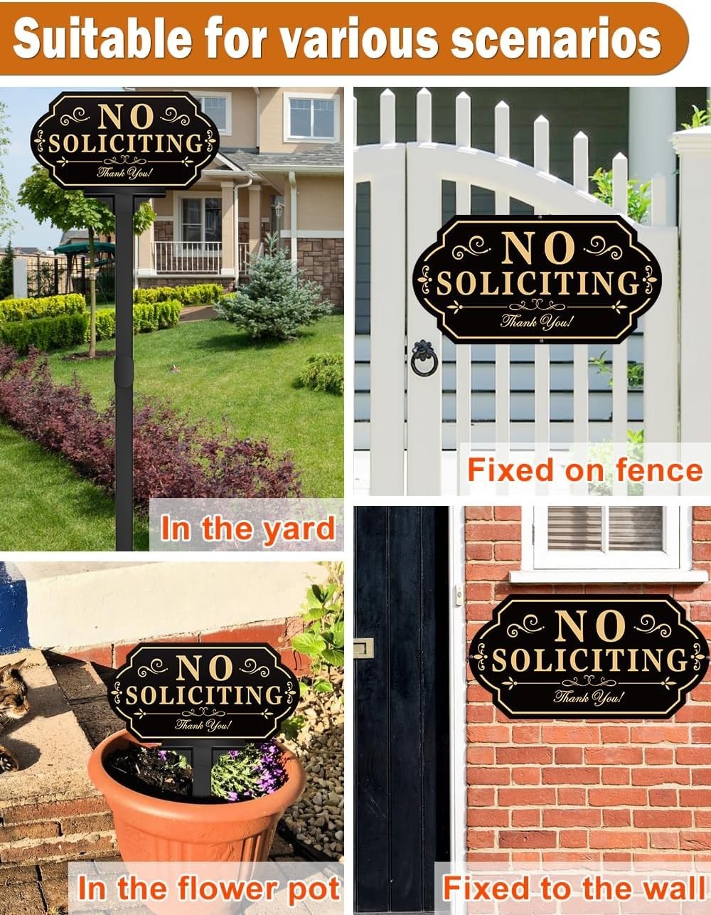 No Soliciting Yard Sign with Stake - 6x12 Metal 36 inch Aluminum for House Door