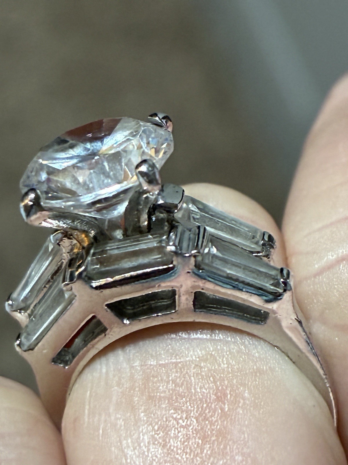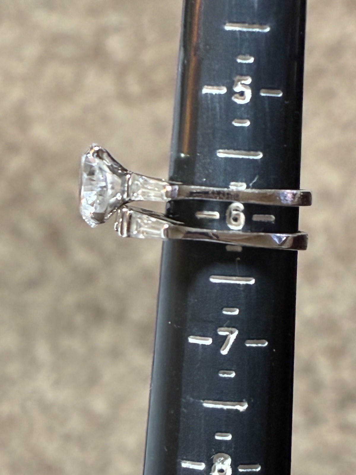 как выглядит Vintage Cubic Zirconia 925 Sterling Silver Solitaire Ring w/Matching Band Tested фото