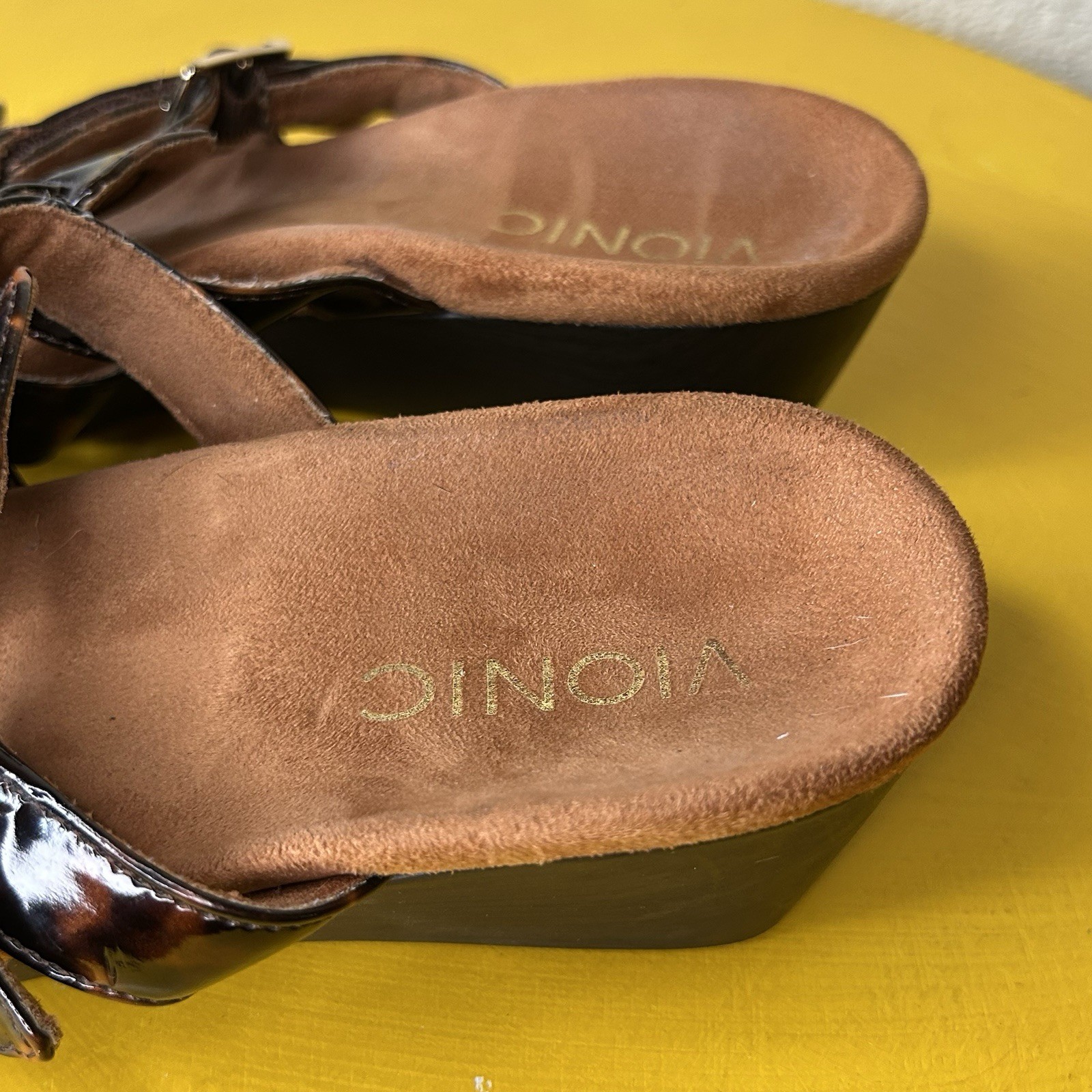 VIONIC Radia Tortoise Orthotic Womens Open Toe Slip On Wedge Sandals size 7