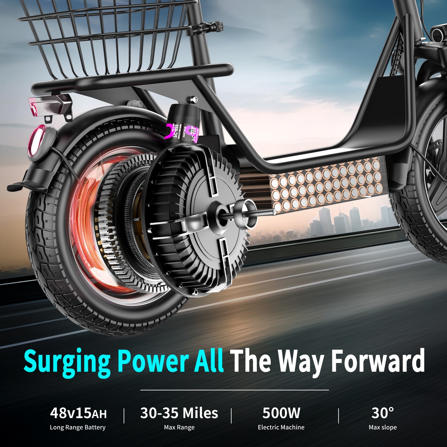 Foldable Electric Scooter Seat 48V 15AH mph Power Motor Escooter Adults 22 Miles