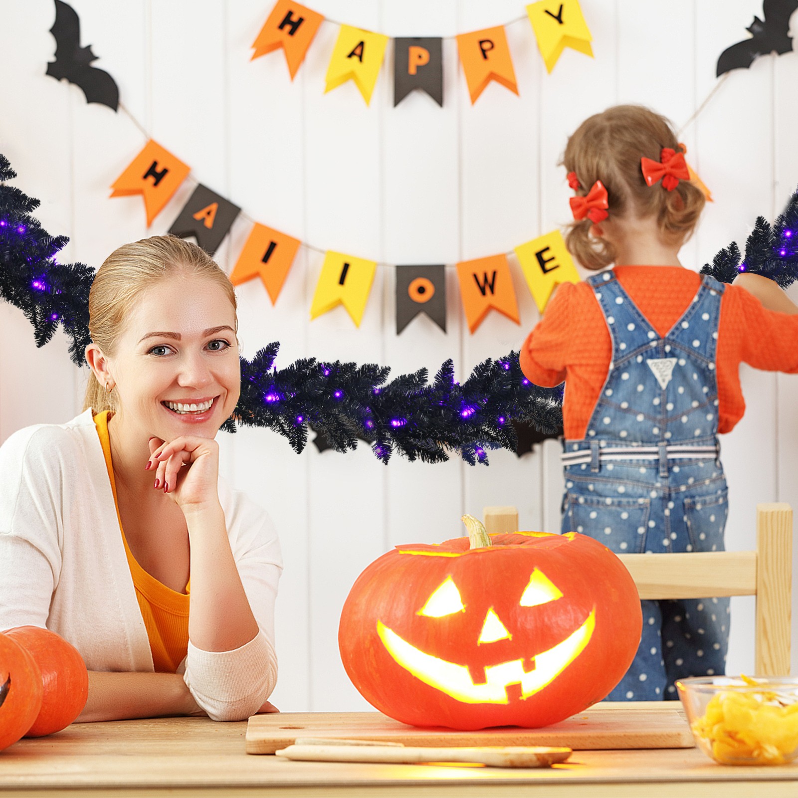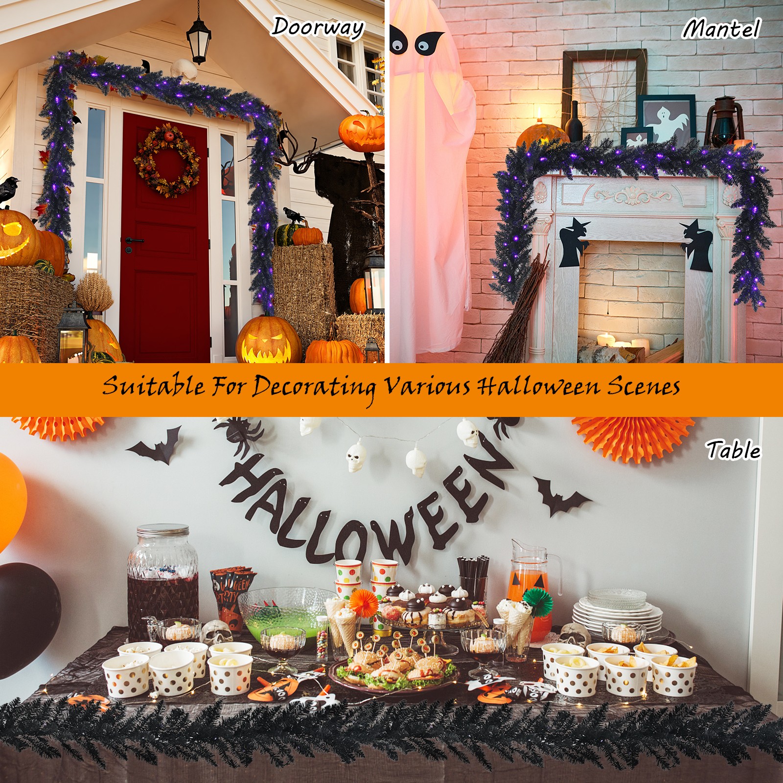 Topbuy 9FT Pre-lit Halloween Garland, Artificial Halloween Rattan W/ 50 Purple