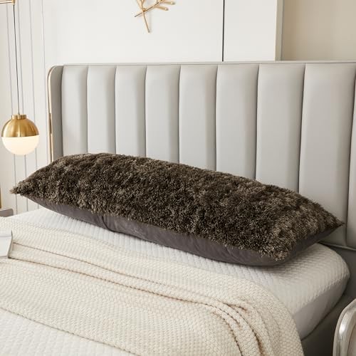 Faux Fur Fluffy Body Pillow Cover Luxury Shaggy 21 x 54 Ombre Dark Grey