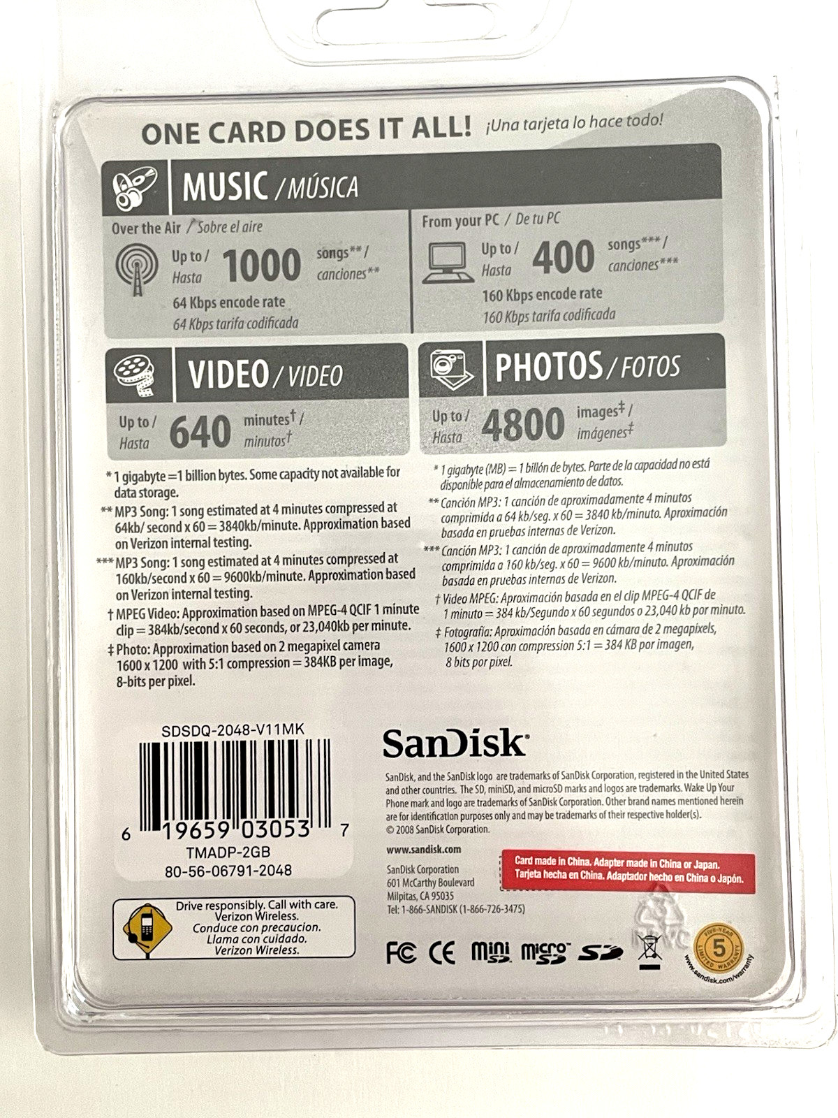 Sandisk 2GB Memory 3 in 1 MicroSD Card with Adapters Verizon Wireless NOS New
