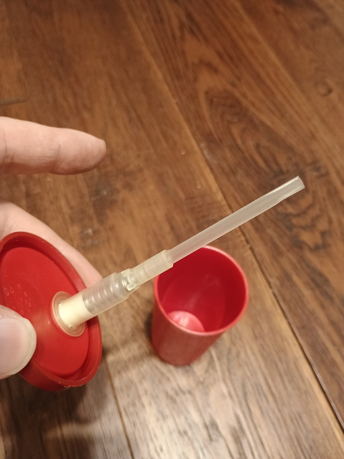 как выглядит TUPPERWARE Red Ketchup Pump Dispenser 1329 870 Vintage фото