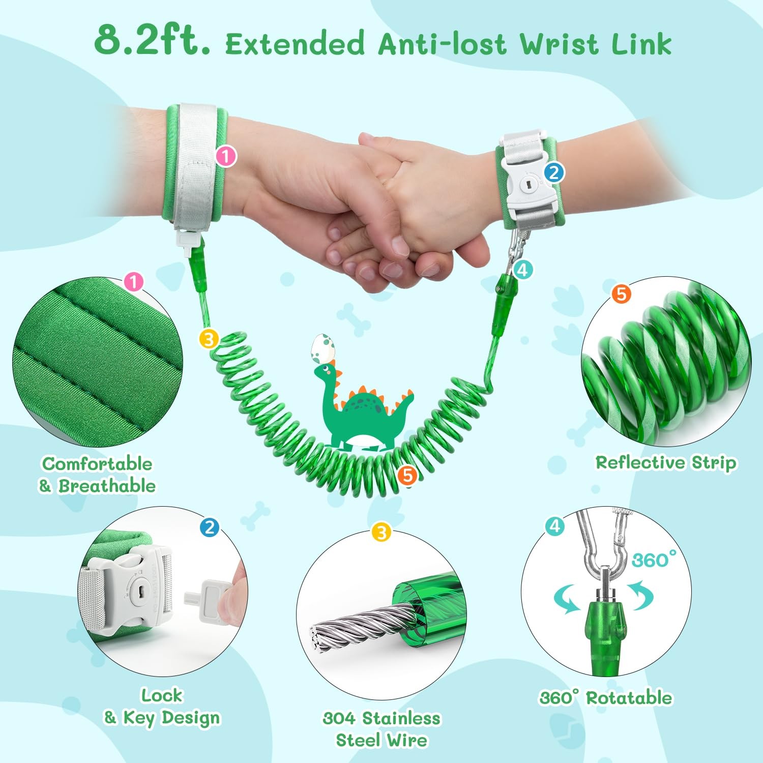 3 in 1 Toddler Harness Leash 8.2ft Anti Lost Wrist Link, Cute Dinosaur Kids...