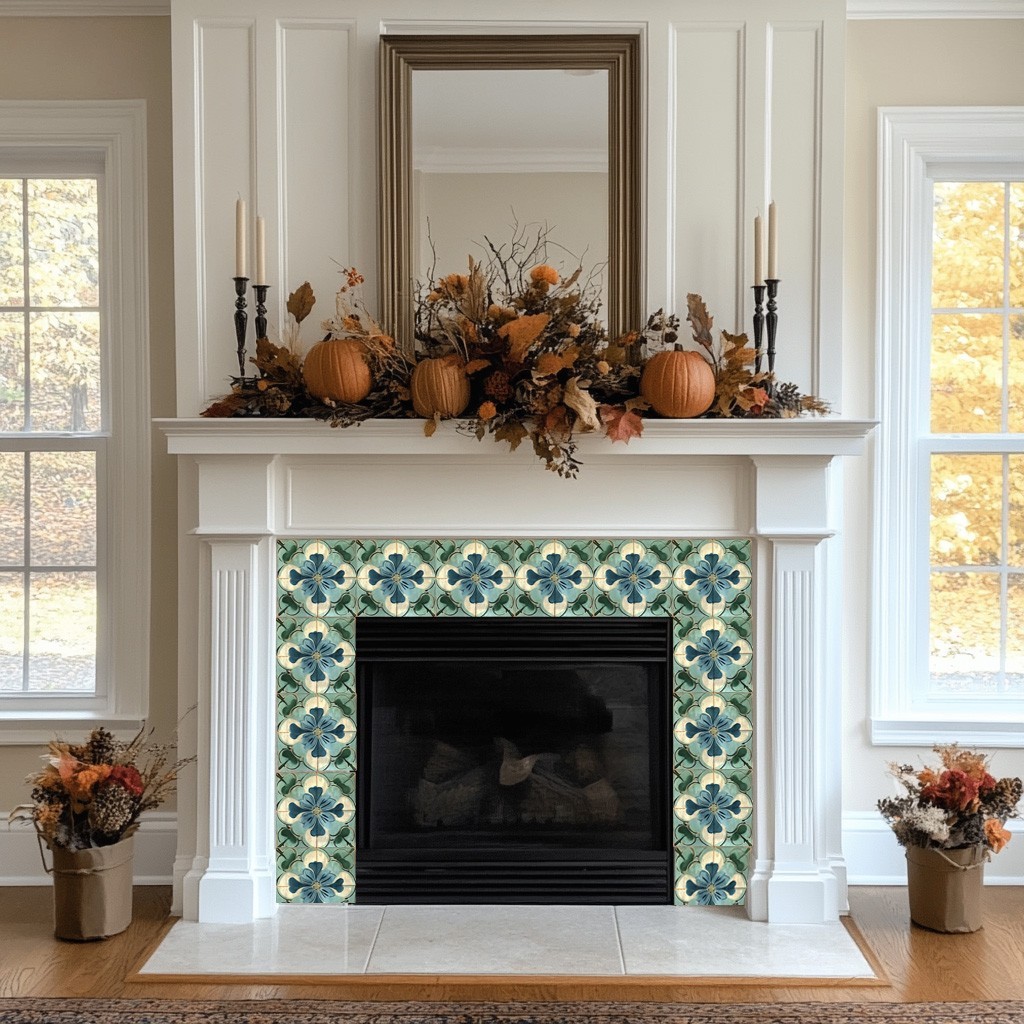 Peel Snd Stick Tile Stickers 24 Unit Pack Green Floral