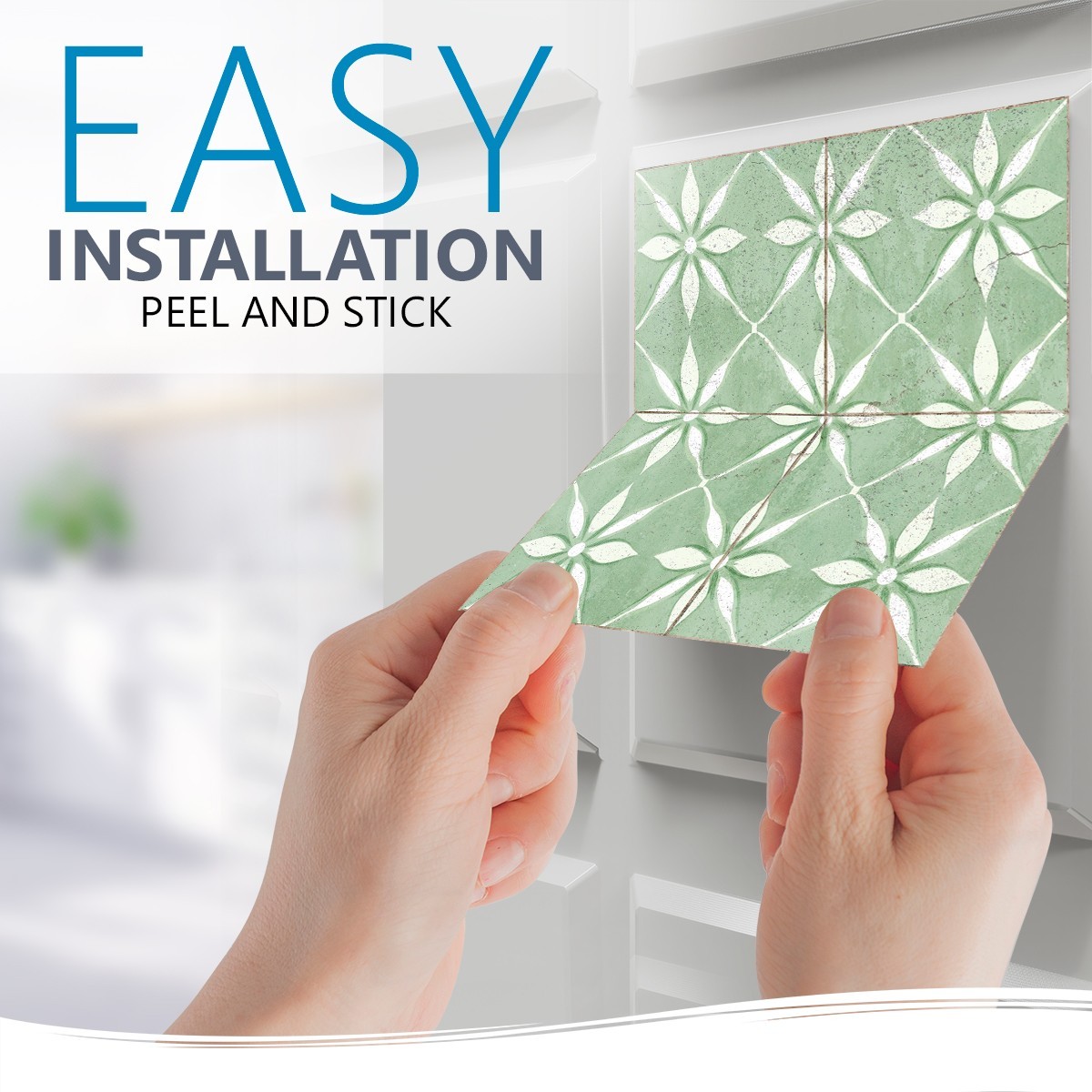 Peel Snd Stick Tile Stickers 24 Unit Pack Retro Green Floral