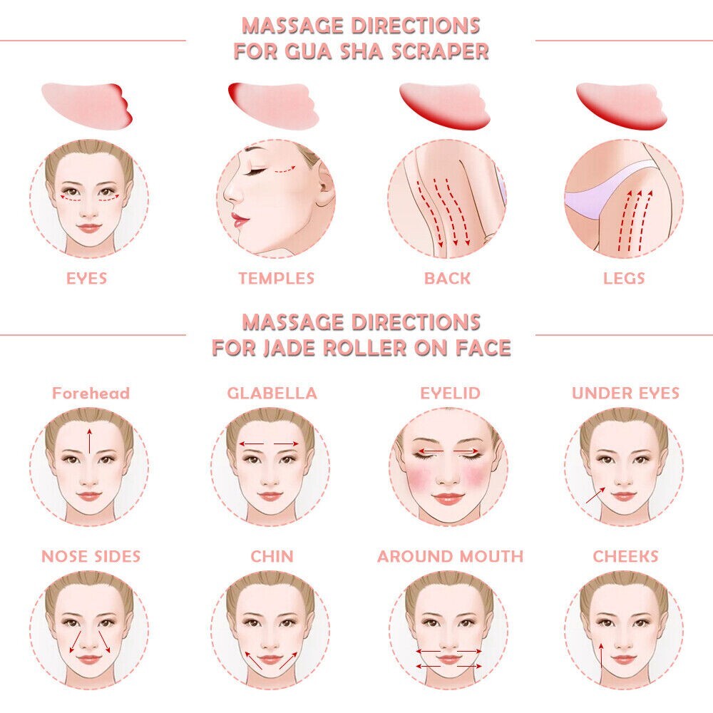 Rosa Quartz Roller Gua Sha Face Body Facial Therapy Massager Stone Beauty
