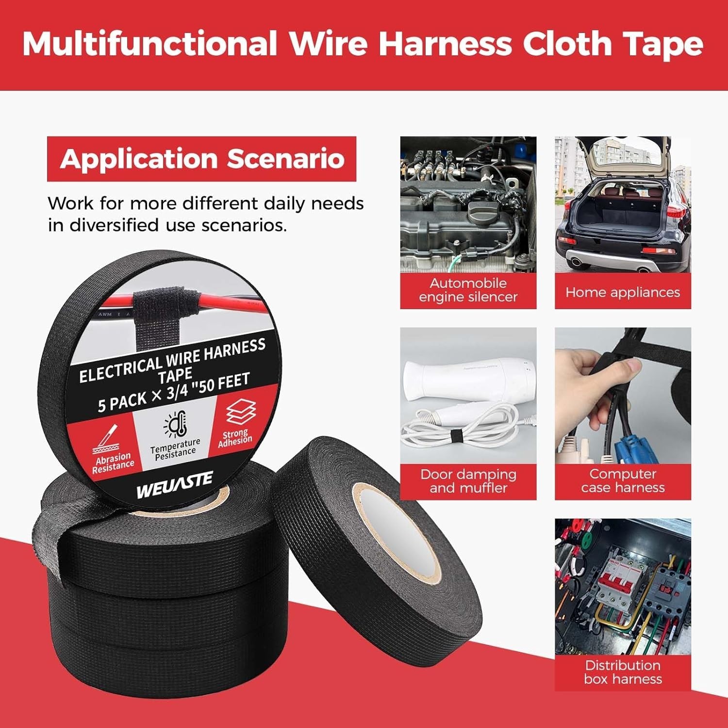 5 Rolls Cloth Tape Wire Electrical Wiring Harness car auto suv truck 3/4 X 50 FT