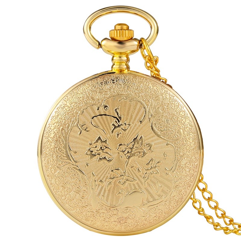 Yellow Gold Crocodile Design Unisex Quartz Analog Pocket Watch Full Hunter Chain