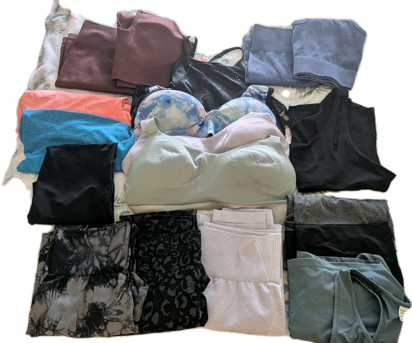 как выглядит HUGE Womens Workout Clothes Lot- Sets, Sports Bras, Pants, Tops, Etc- Sz L фото