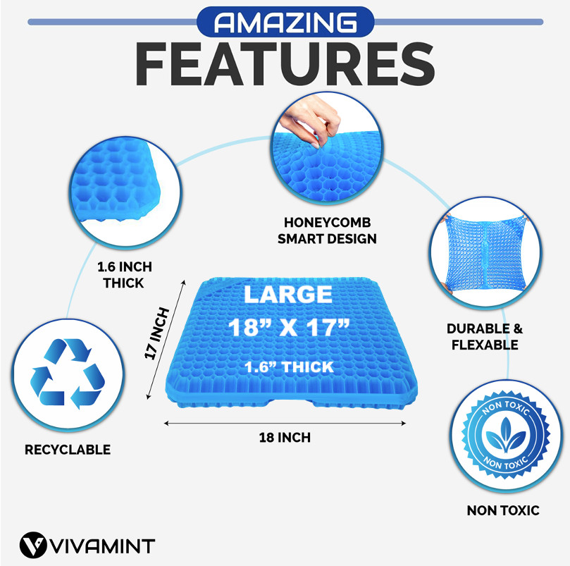 как выглядит Gel Seat Cushion for Long Sitting, Ergonomic Cooling Pad w/ Non-Slip Cover фото