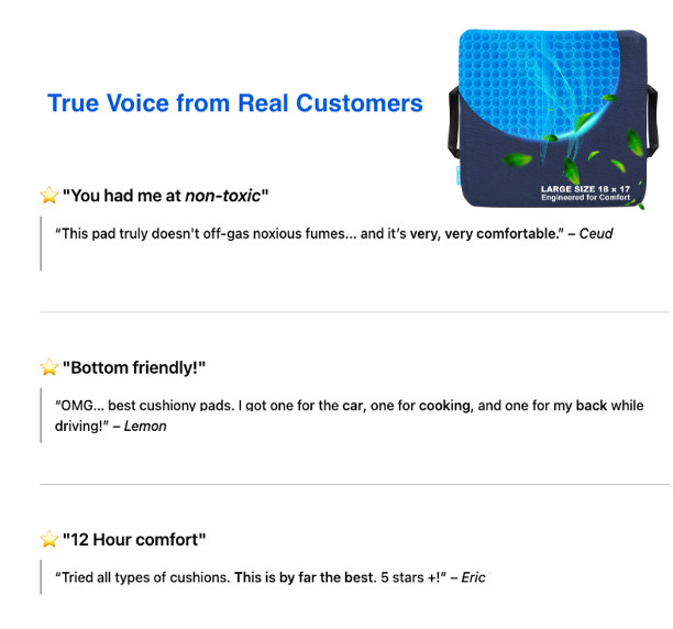 Gel Seat Cushion for Long Sitting, Ergonomic Cooling Pad w/ Non-Slip Cover
