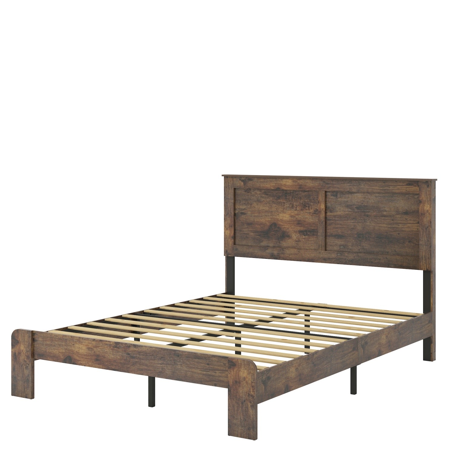 Full/King Size Bed Frame Wood Platform Bed with Headboard Wood Slat Support