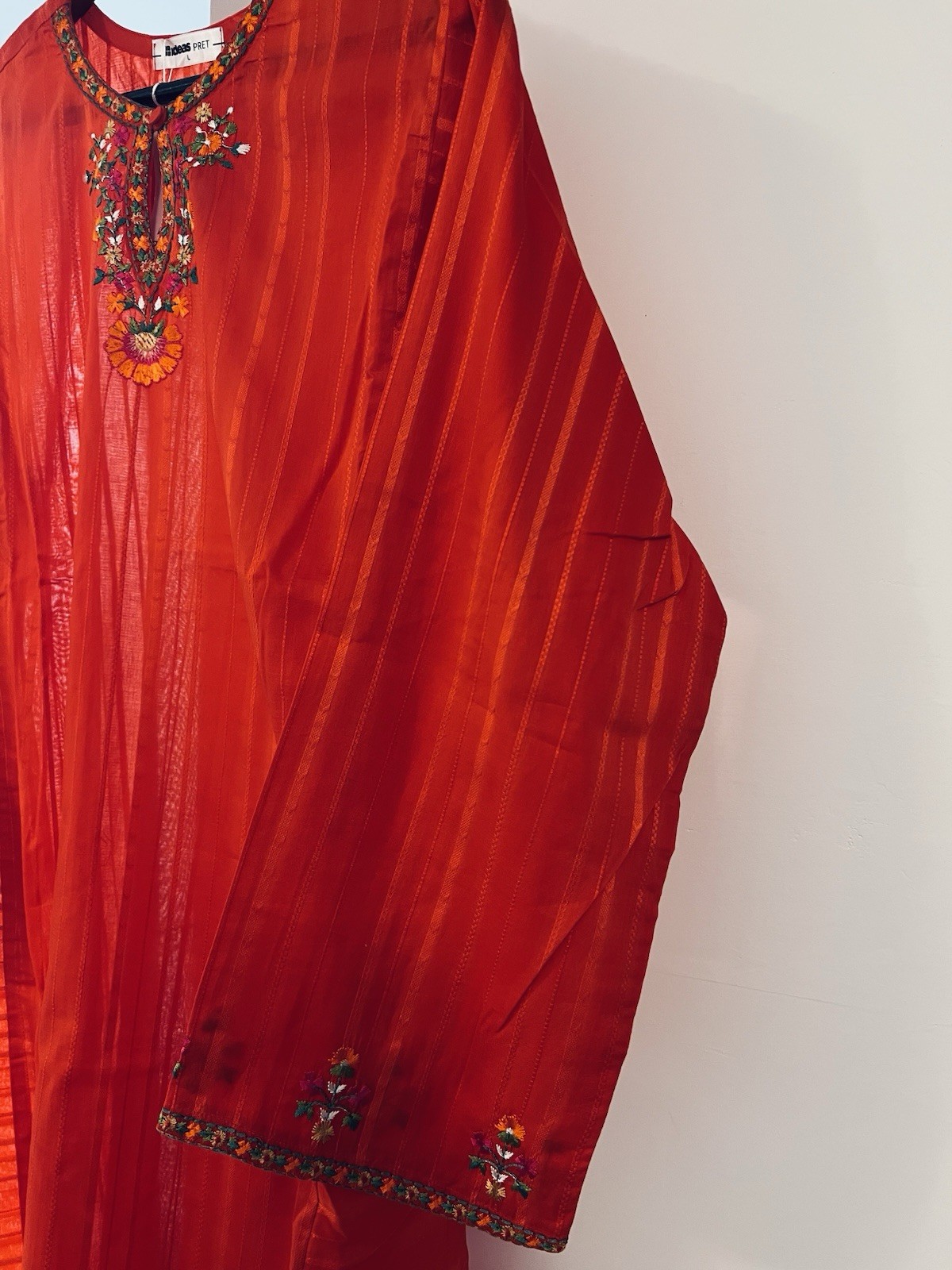 Pakistani Embroidered Long Cotton Kurta.Long Sleeves.Size Large. Summer Fabric.
