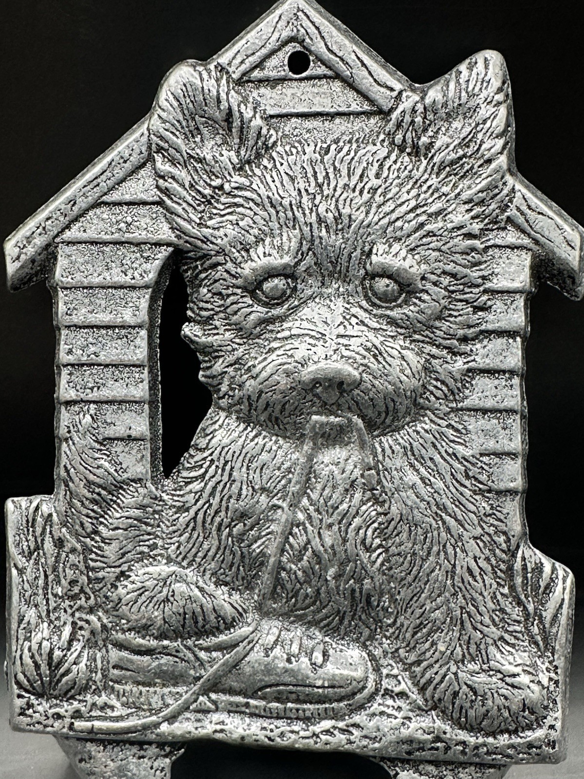 Puppy With Shoe Wall Hanger Pewter Metal Hook Coat Key Leash Terrier Dog