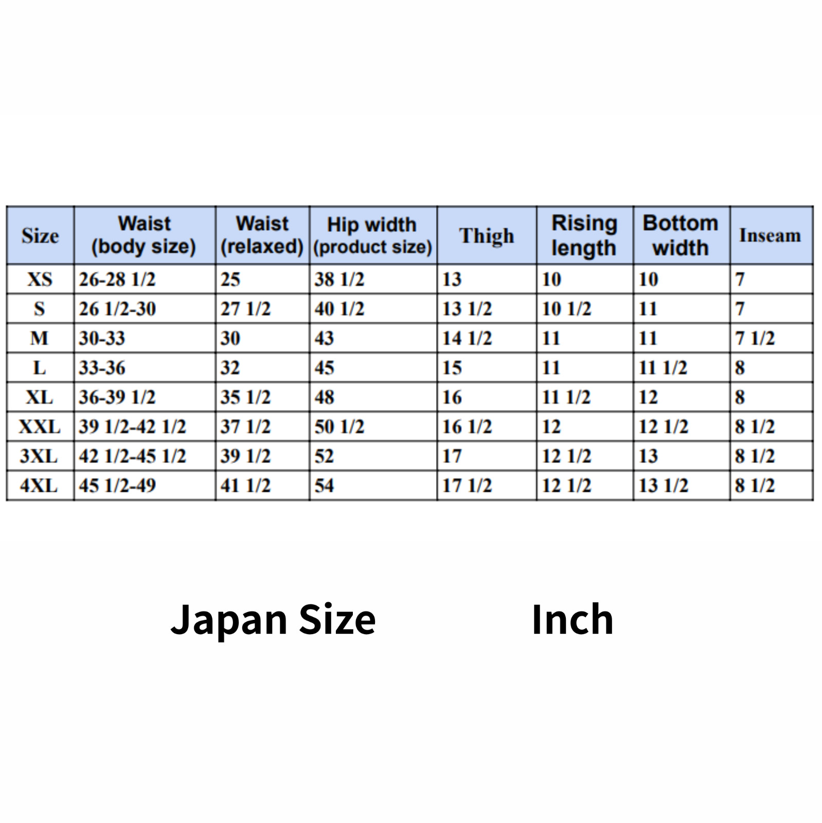 Inseam: 7~8 1/2 in