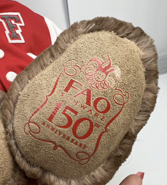 FAO Schwarz Teddy Bear Soft Plush Toy Brown Varsity Jacket 150th Anniversary Bea