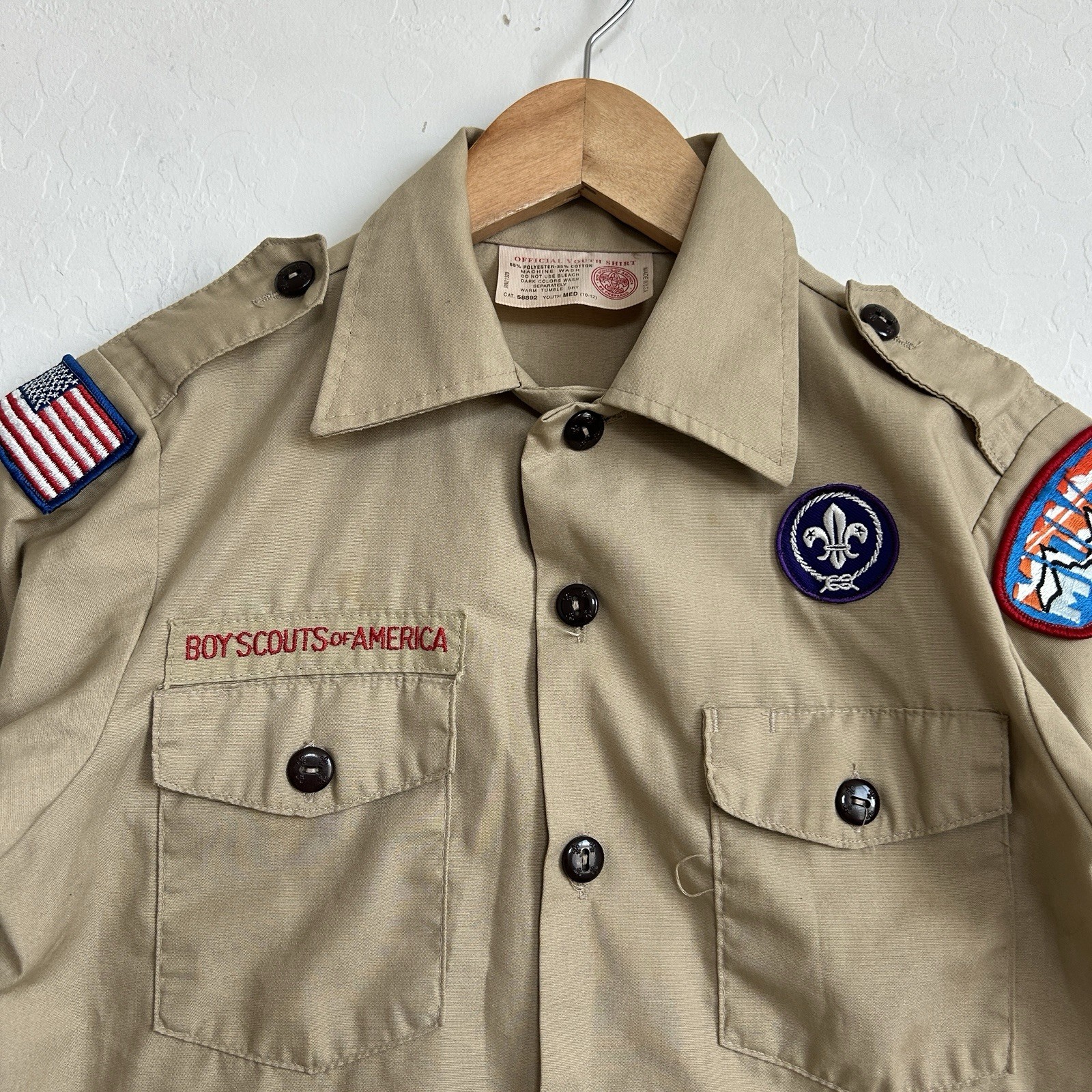 Boy Scouts BSA VTG Uniform Shirt YOUTH MEDIUM Long Sleeve Pockets Beige Tan