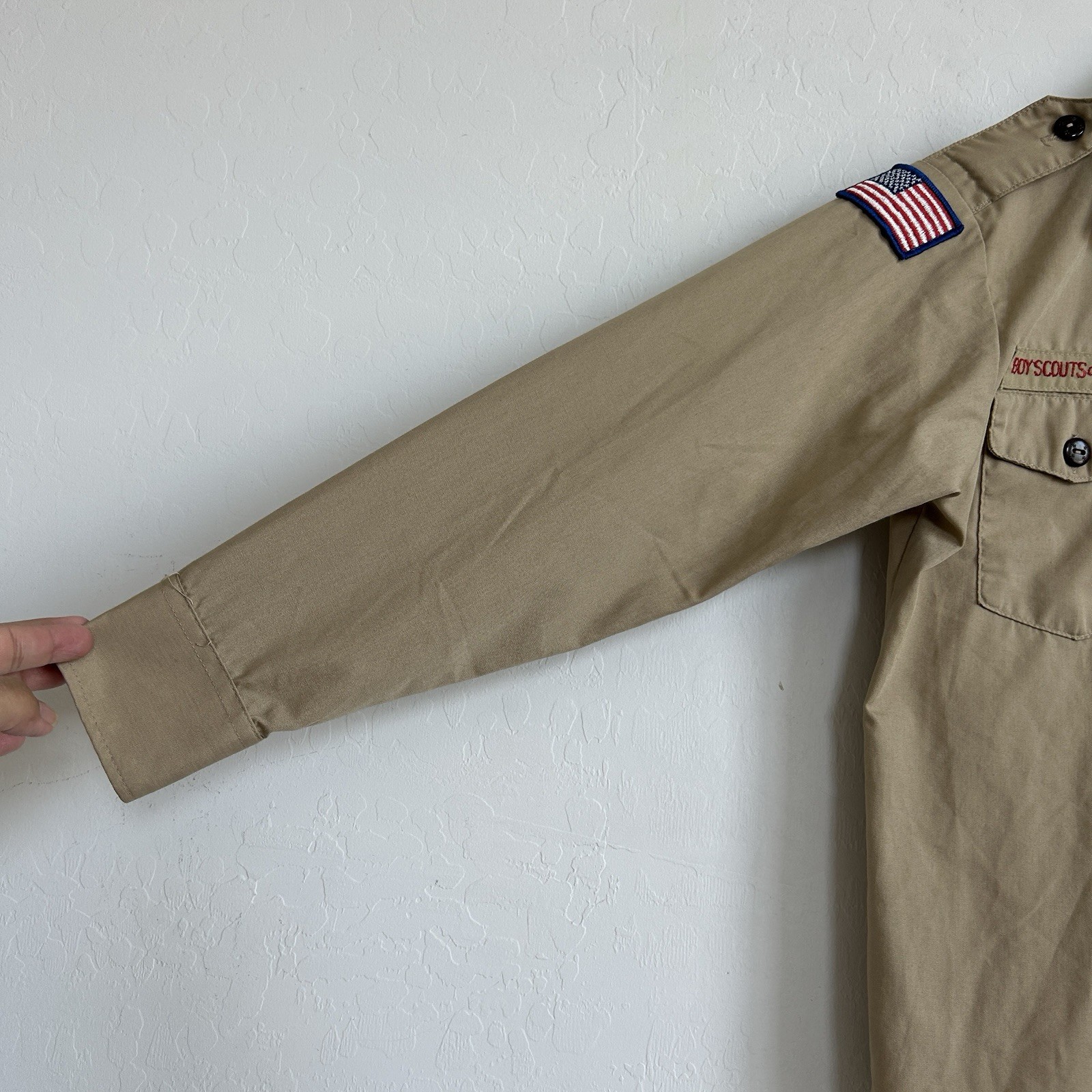 как выглядит Boy Scouts BSA VTG Uniform Shirt YOUTH MEDIUM Long Sleeve Pockets Beige Tan фото