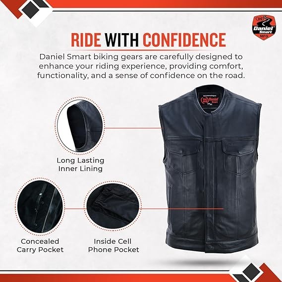 SOA Mens Leather Vest Anarchy Motorcycle Club Concealed Carry Side Lace Vest New
