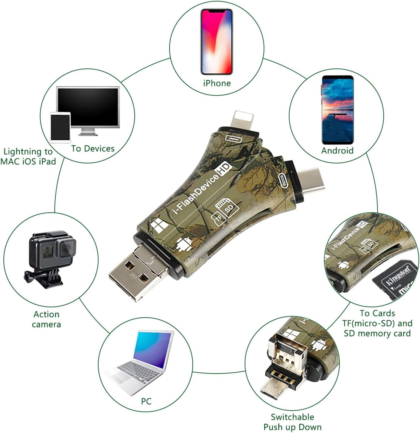 Trail Camera Viewer SD Card Reader for iPhone iPad Mac Android, 4 in 1 SD/M...