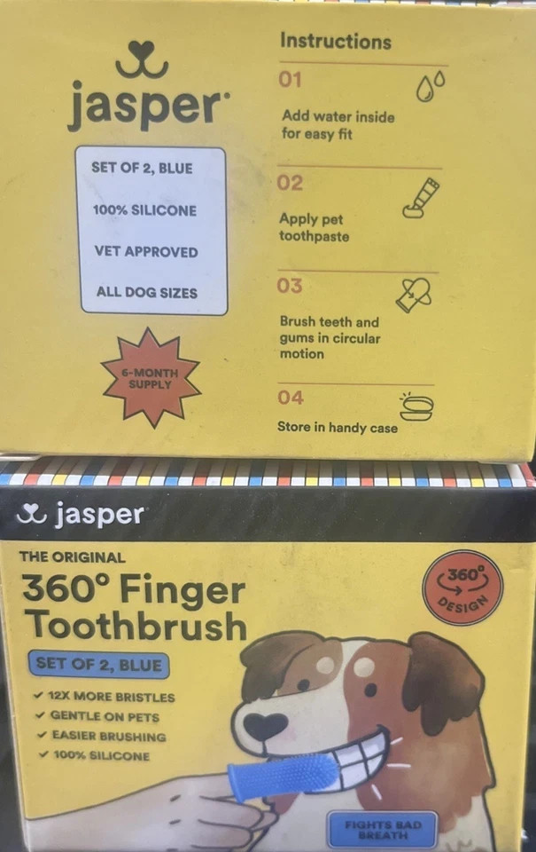 2x Jasper Dog Toothbrush,360 Dog Tooth Brushing Kit Finger Toothbrush Cat Tooth