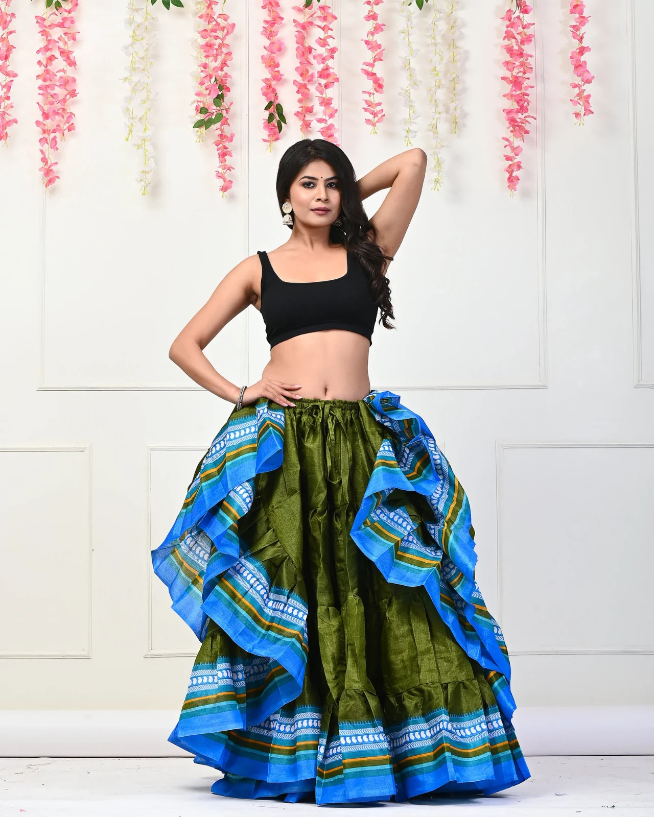Olive 25 Yard Skirt Linen Cotton Rajasthani Belly Dance Stylish Saree for Woman
