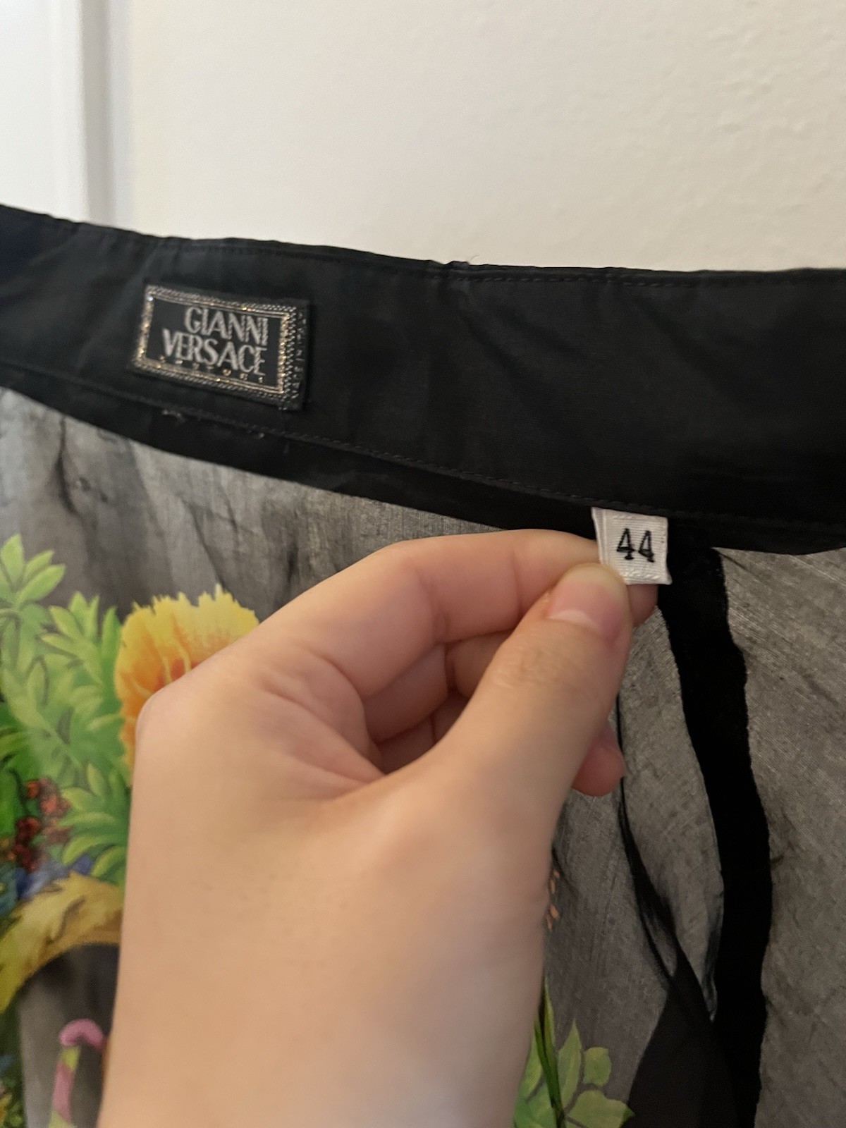 как выглядит Vintage VERSACE Tropical Multicolor Silk Button-Up Blouse, Oversized, Signed фото