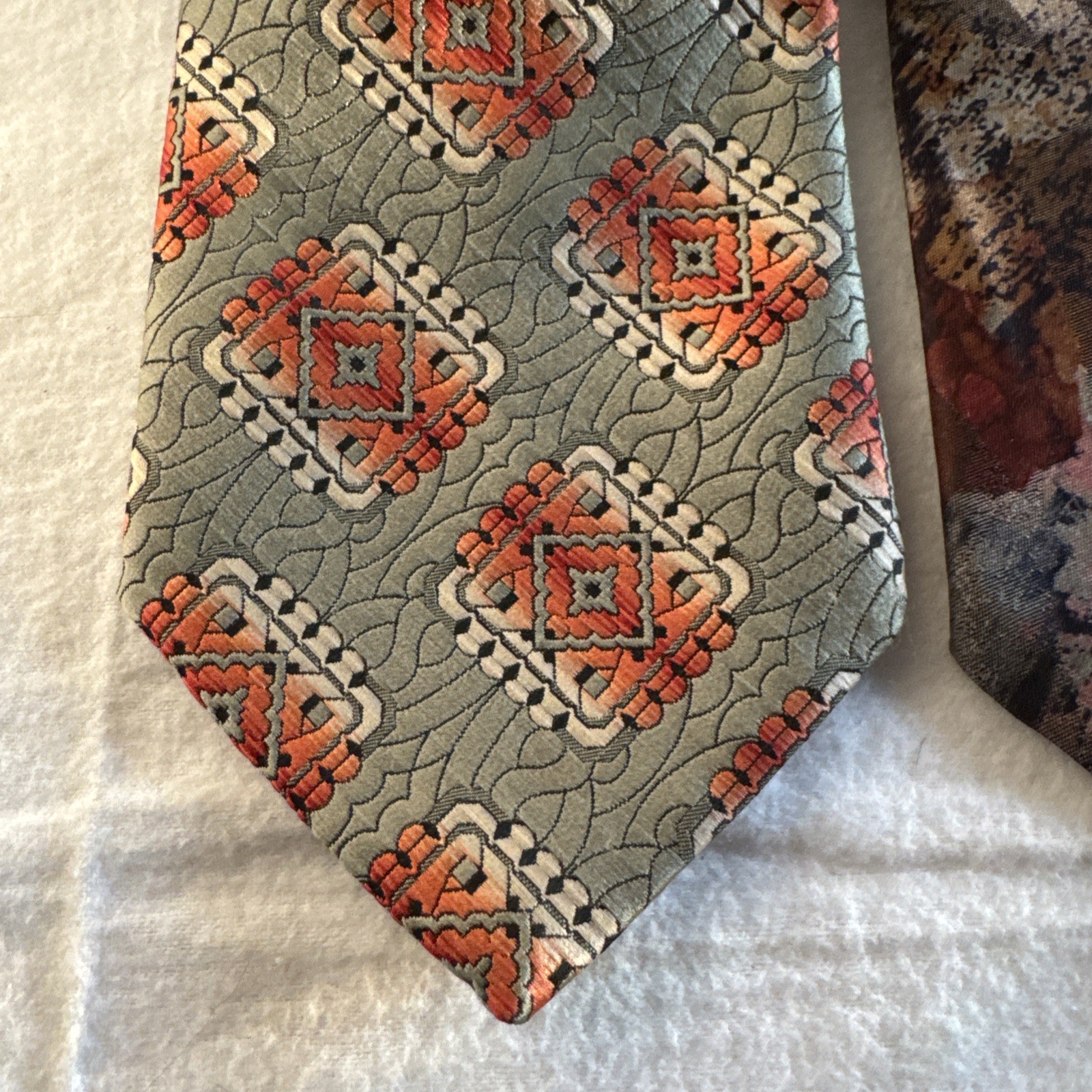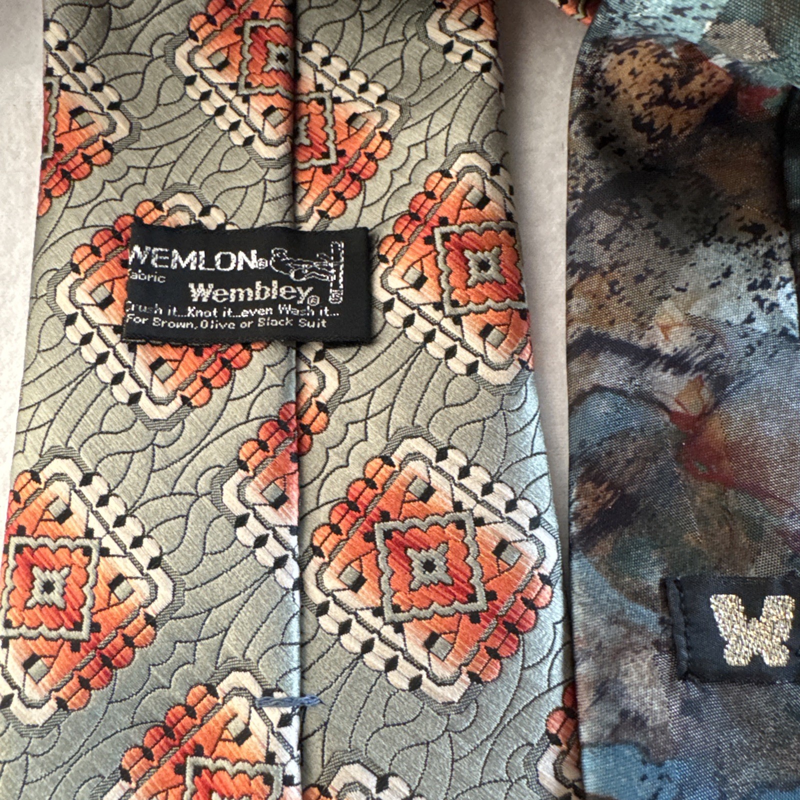 как выглядит 3 VTG Wemlon Wembley Mens Neck Tie Brown Stripes Groovy Swirl 70s Retro Geo 4 фото