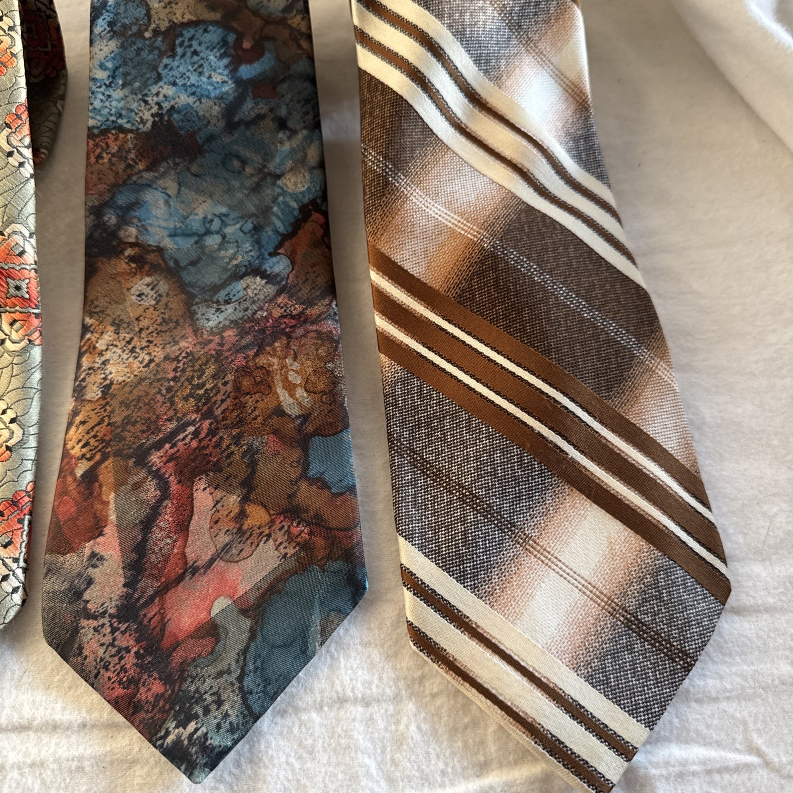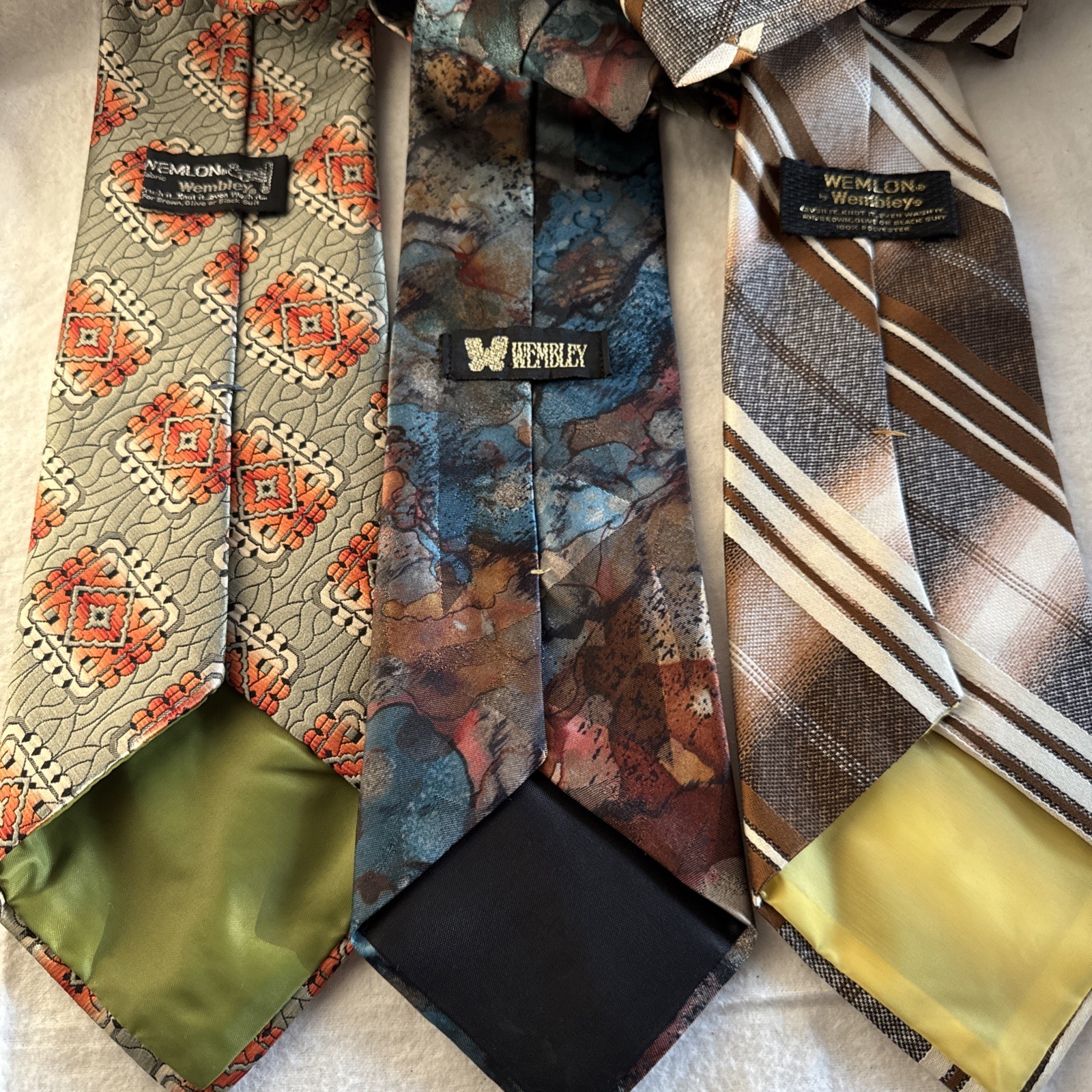 3 VTG Wemlon Wembley Mens Neck Tie Brown Stripes Groovy Swirl 70s Retro Geo 4