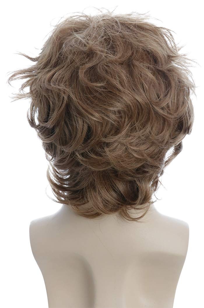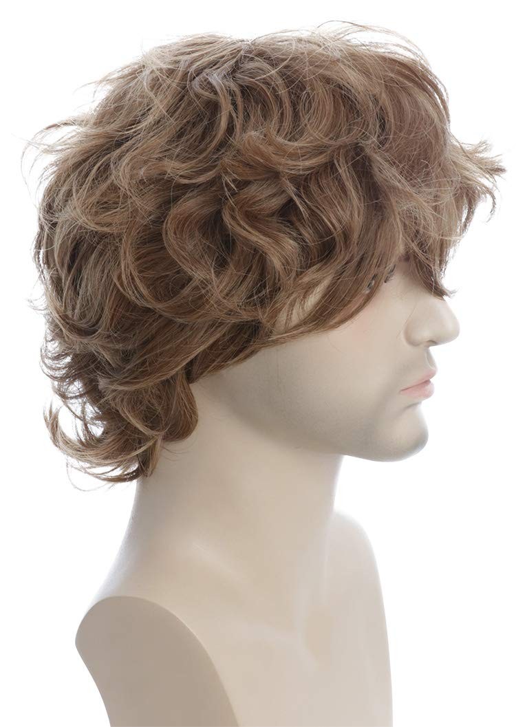 karlery Male Mens Short Curly Fluffy Brown Wig with Bang Halloween