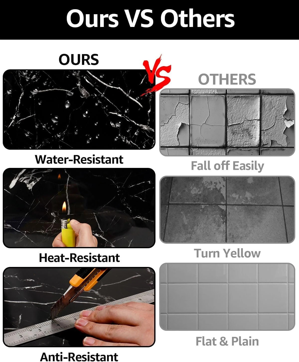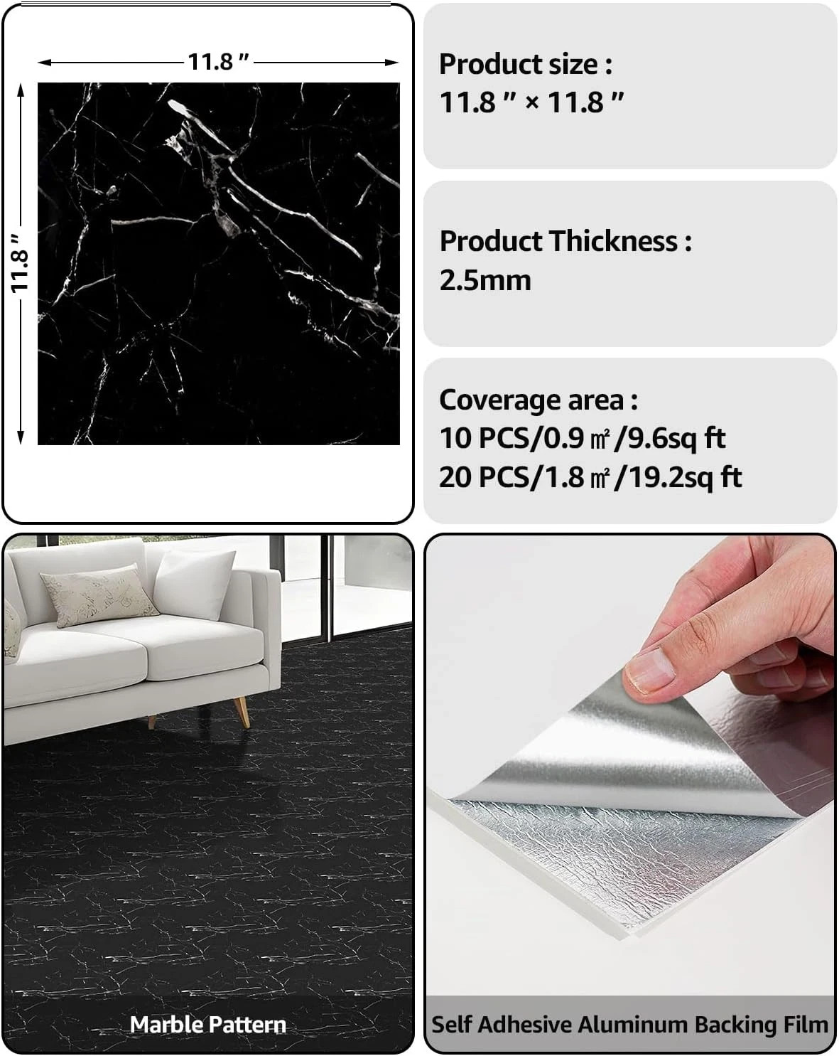 20pcs Waterproof Peel and Stick Marble Wall Tiles, 11.8x11.8 Self-Adhesive PVC