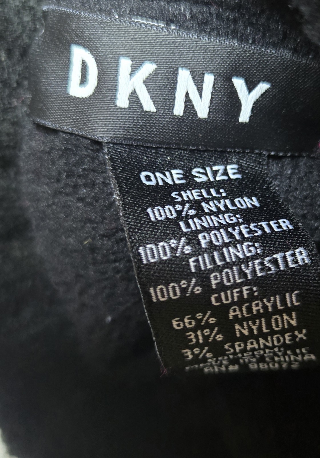 как выглядит DKNY Pink and Black Womens Logo Stadium Beanie With Pom, One Size фото