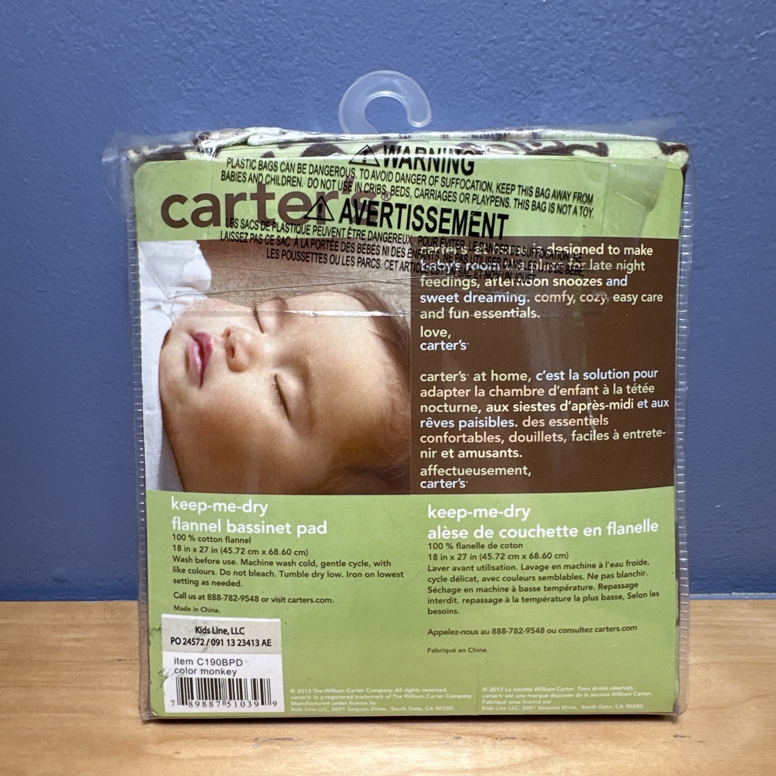 как выглядит Carter s Keep-Me-Dry Flannel Bassinet Pad Monkey Print Light Green фото