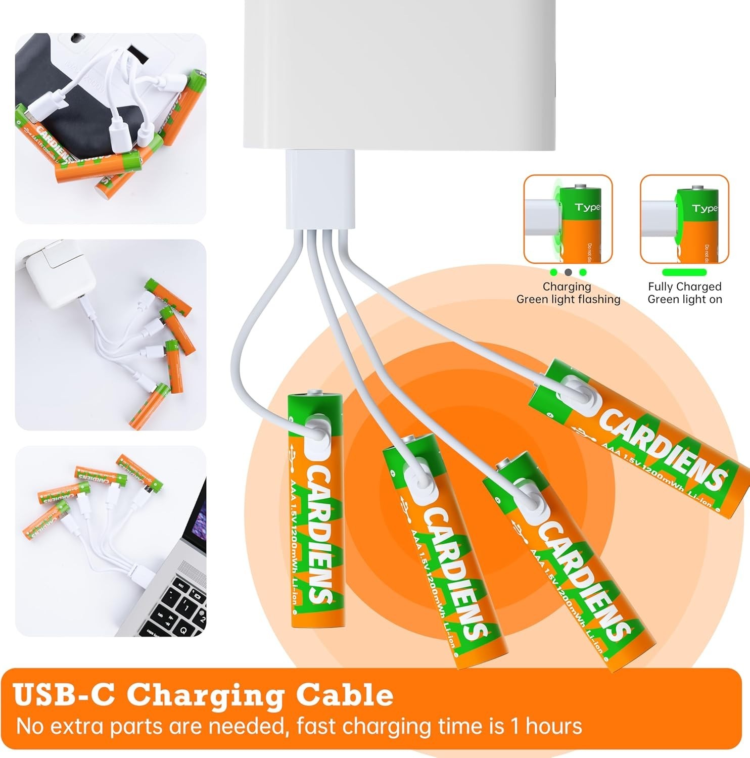 Rechargeable AAA Batteries 1200mAh with USB-C Fast Charging - 4-Pack