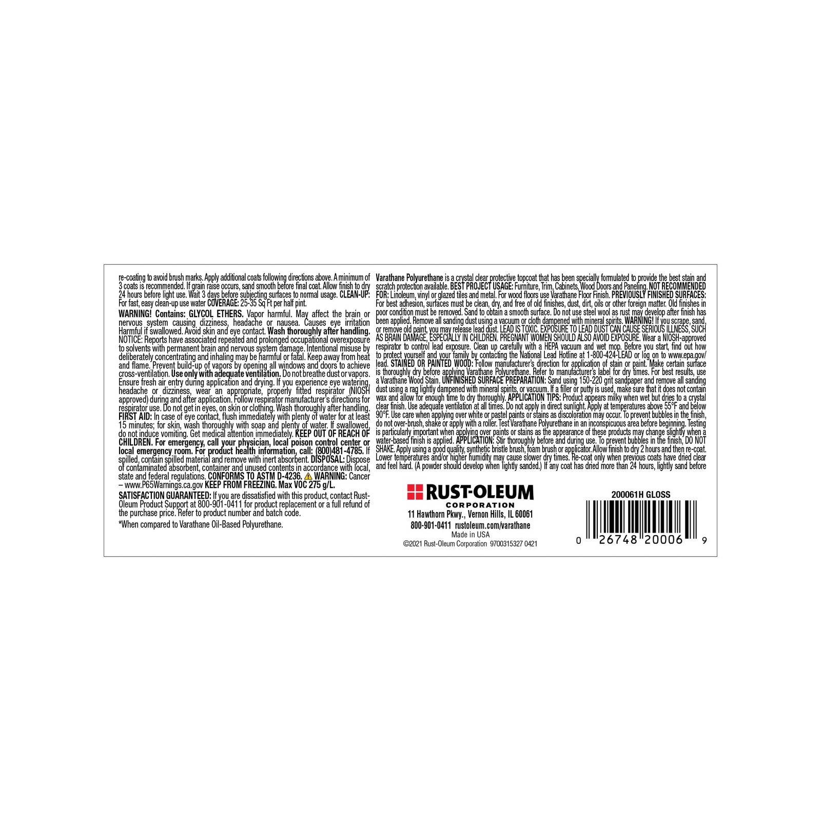 • New Clear, Varathane Gloss Ultimate Crystal Clear Polyurethane Water-Based