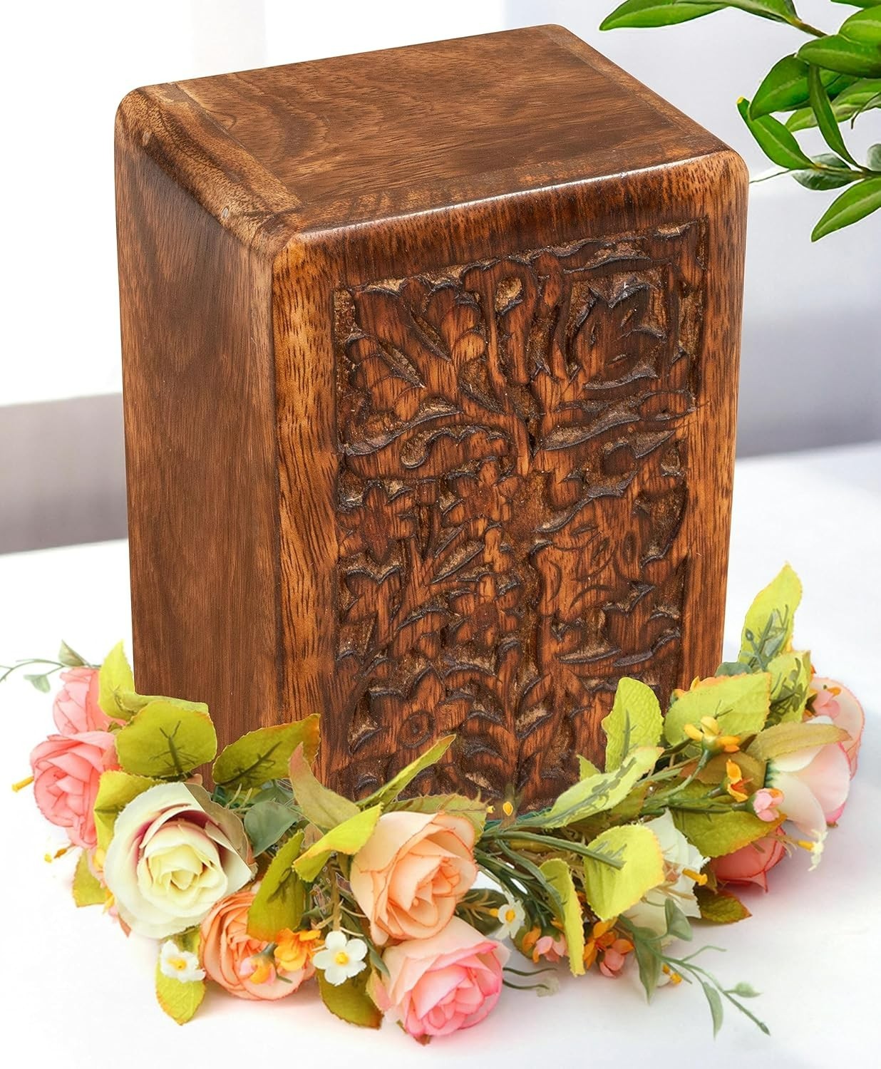 Hand Craving Wooden Cremation Box/Urns for Human Ashes Adult,Funeral Urn Box Sm