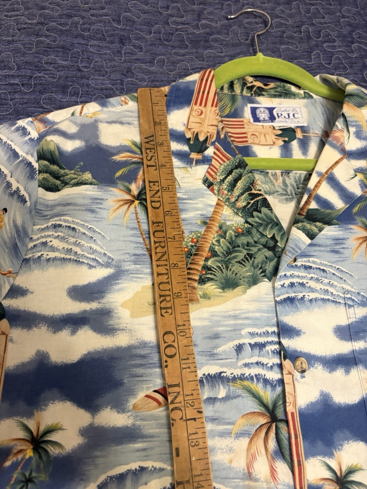 как выглядит RJC Hawaiian Shirt Mens XL Made In HAWAII Boats, Palms, Surfboards Beach Pre-Own фото