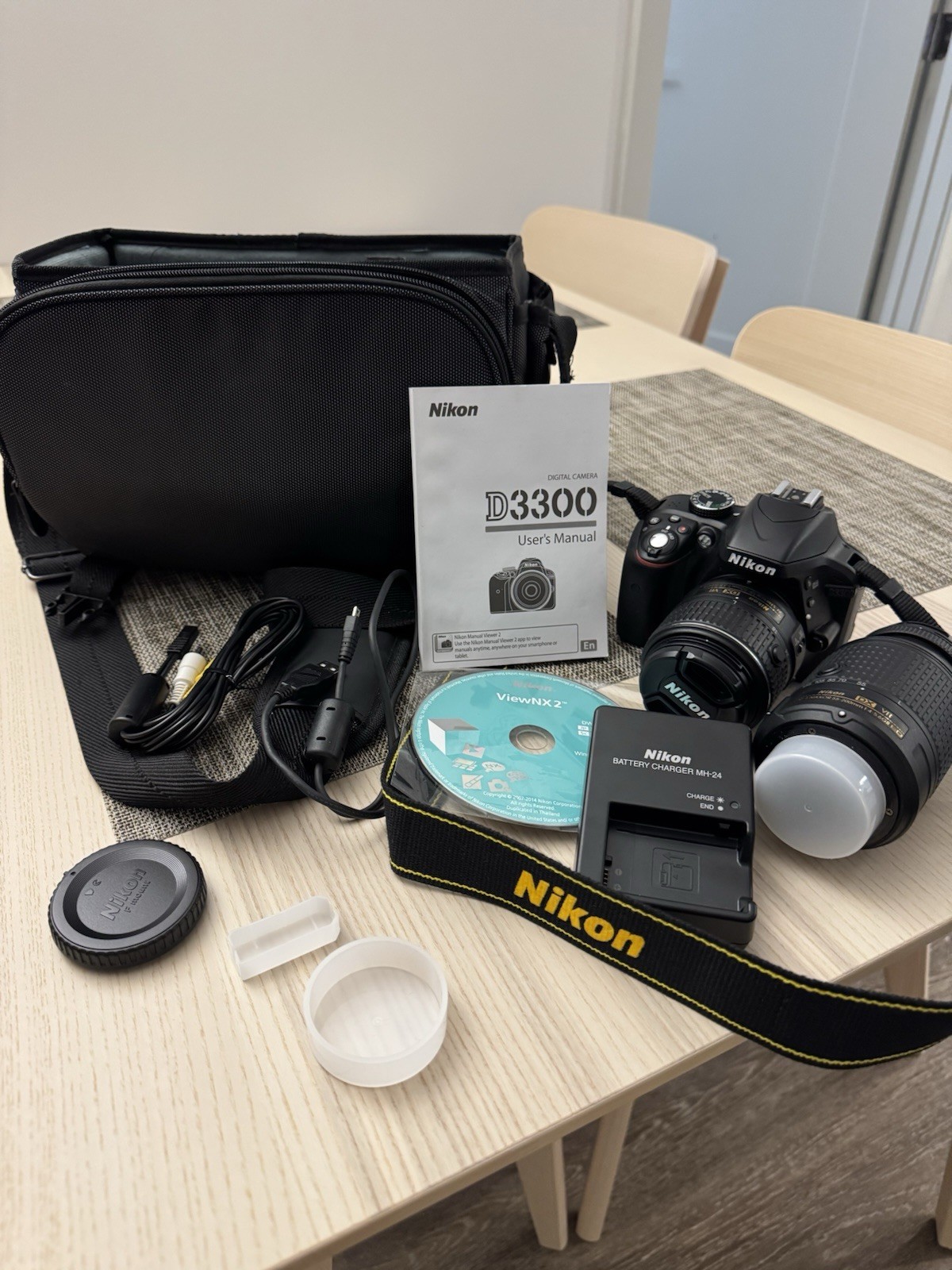 Nikon D3300 24.2MP DSLR Camera Kit w/ 18-55mm and 55-200mm Lenses Low shutter Ct