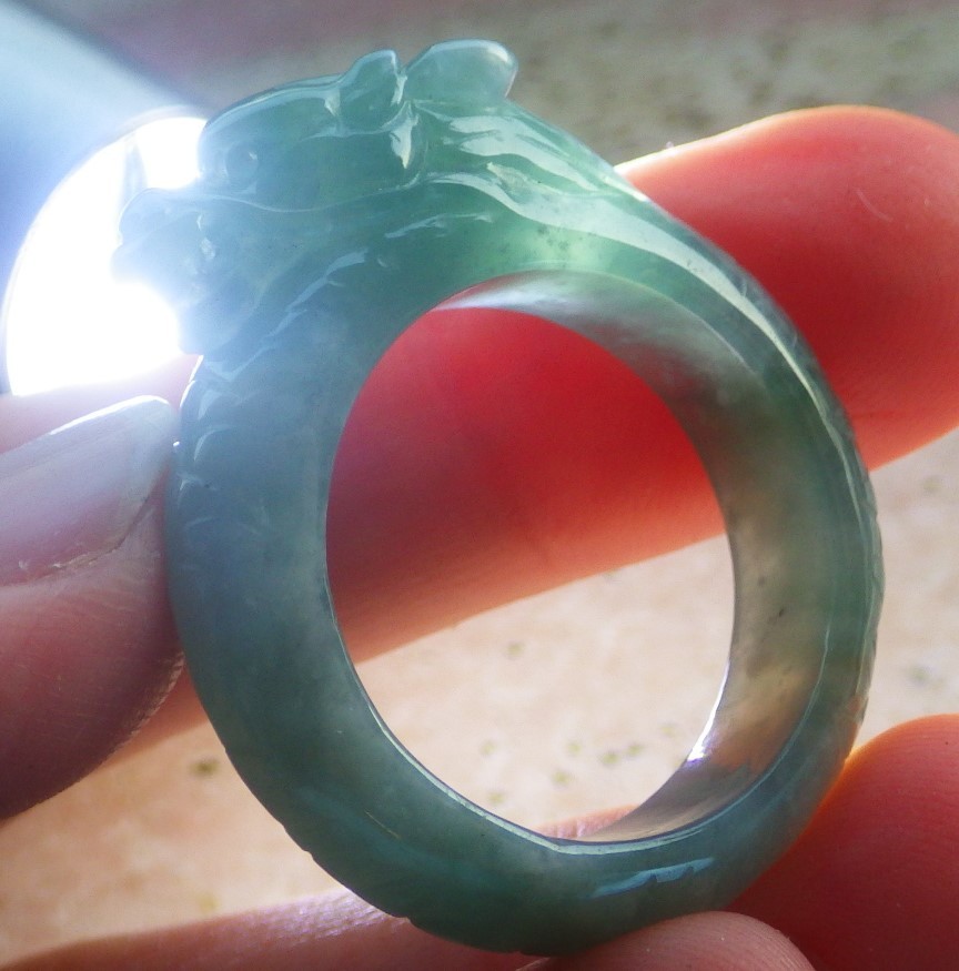 Video Certified Green Natural A JADE Jadeite Dragon RING USA. 10.25 708423