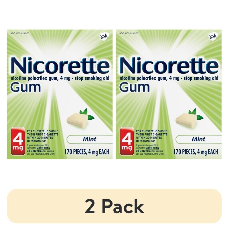 2 Pack Nicotine Gum 4mg Stop Smoking Aid Fresh Mint 170 Count Chewing Gum New