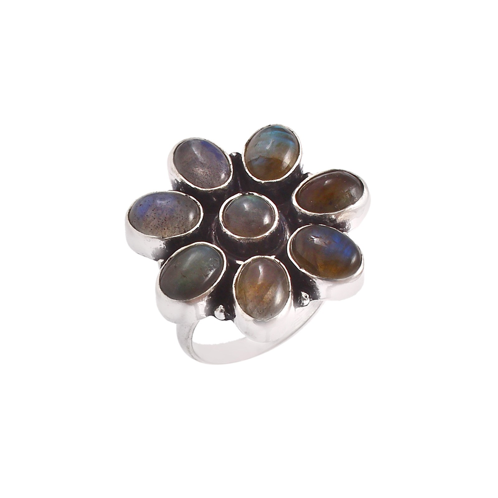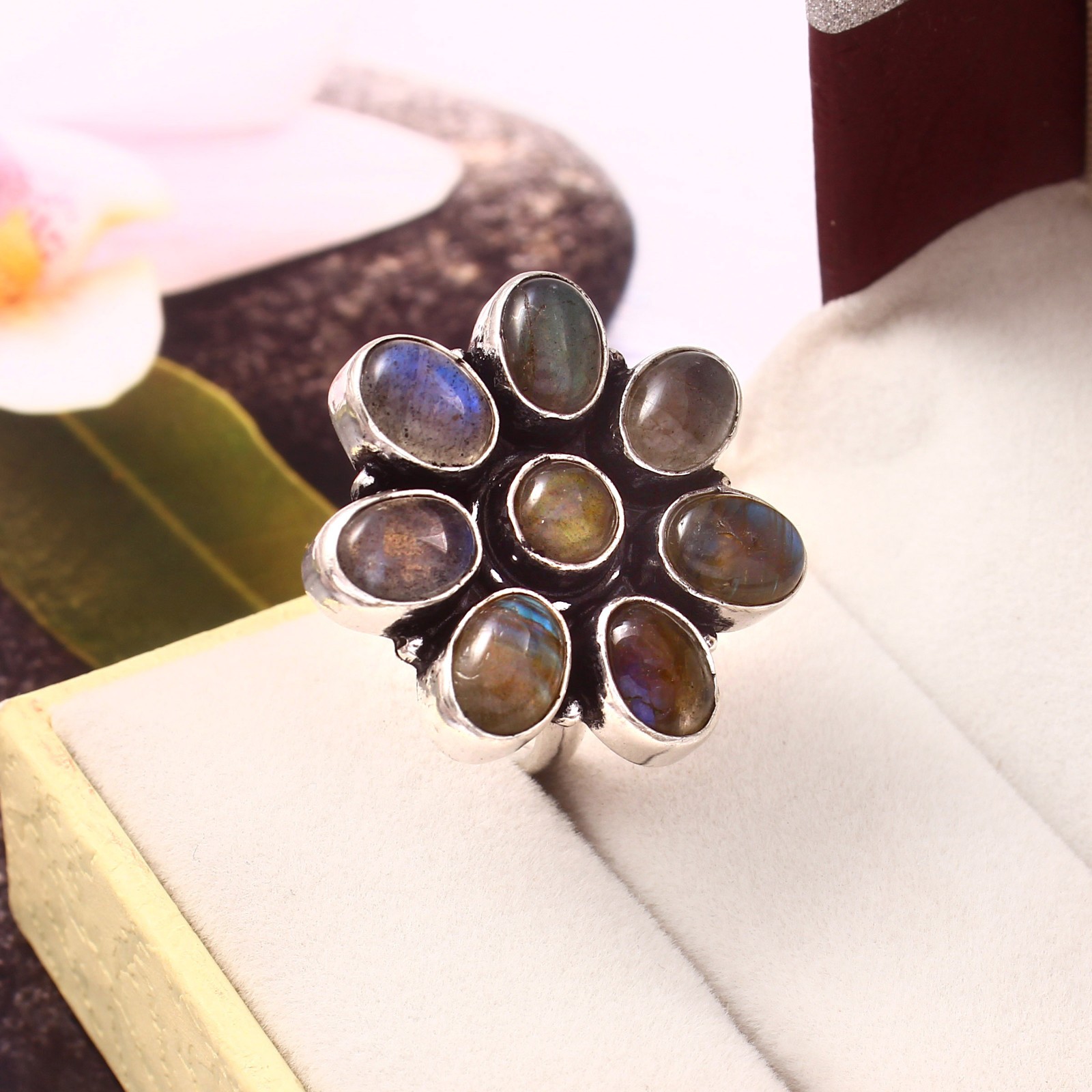 925 Sterling Silver Blue Fire Labradorite Gemstone Jewelry Adjustable Ring