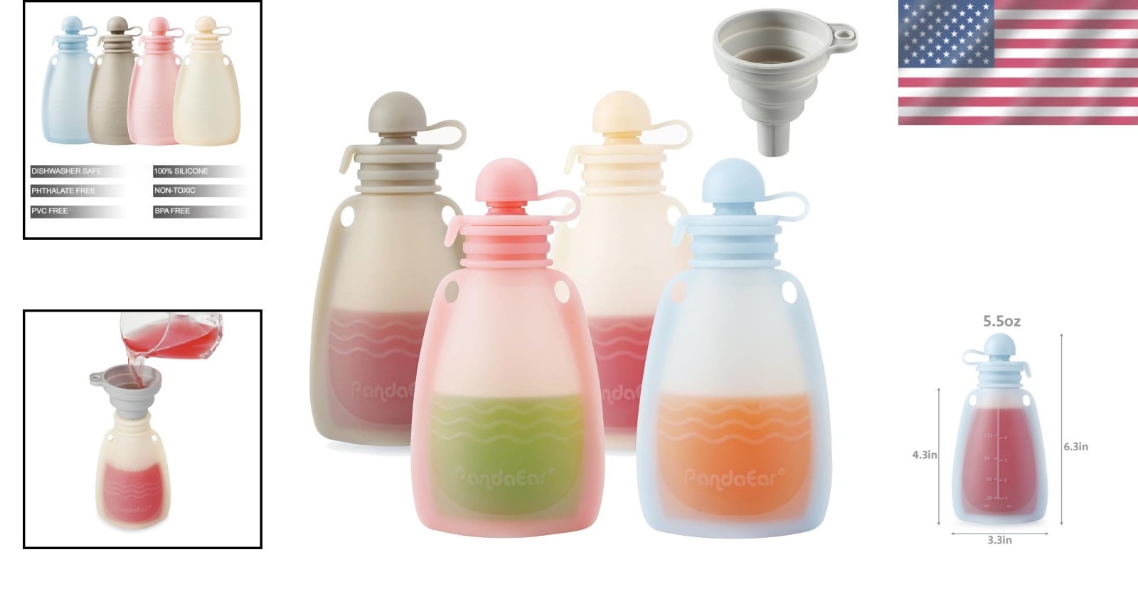 как выглядит BPA-Free Reusable Silicone Baby Food Pouches - 4 Pack, 5.5 oz Travel-Friendly фото