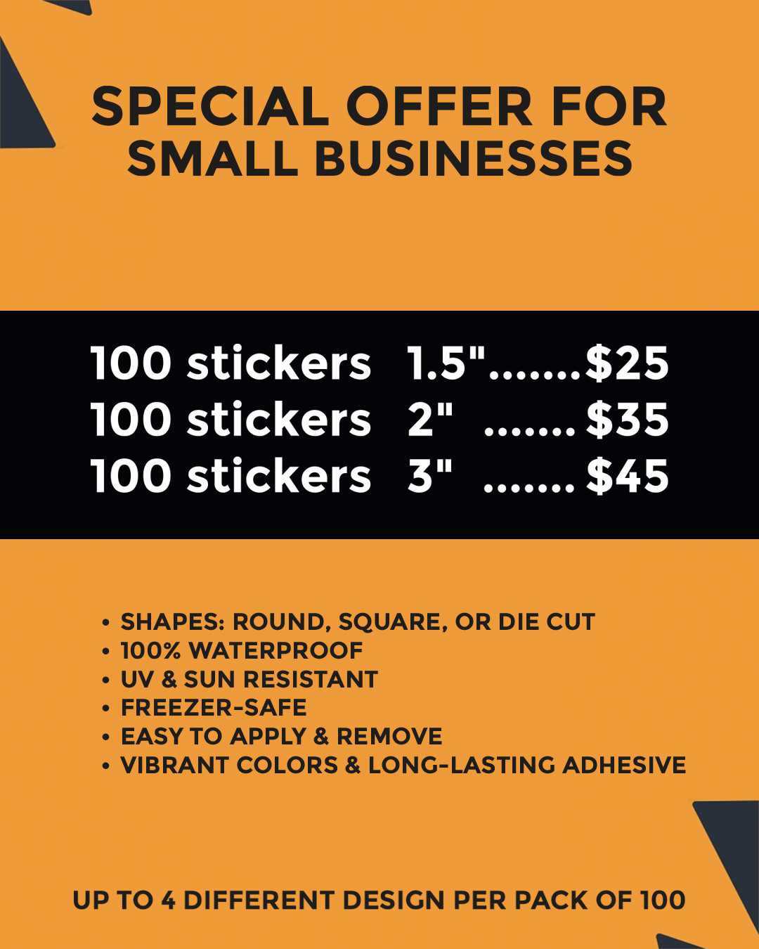 Custom Vinyl Stickers Pack of 100 Round, Square or Die Cut Waterproof