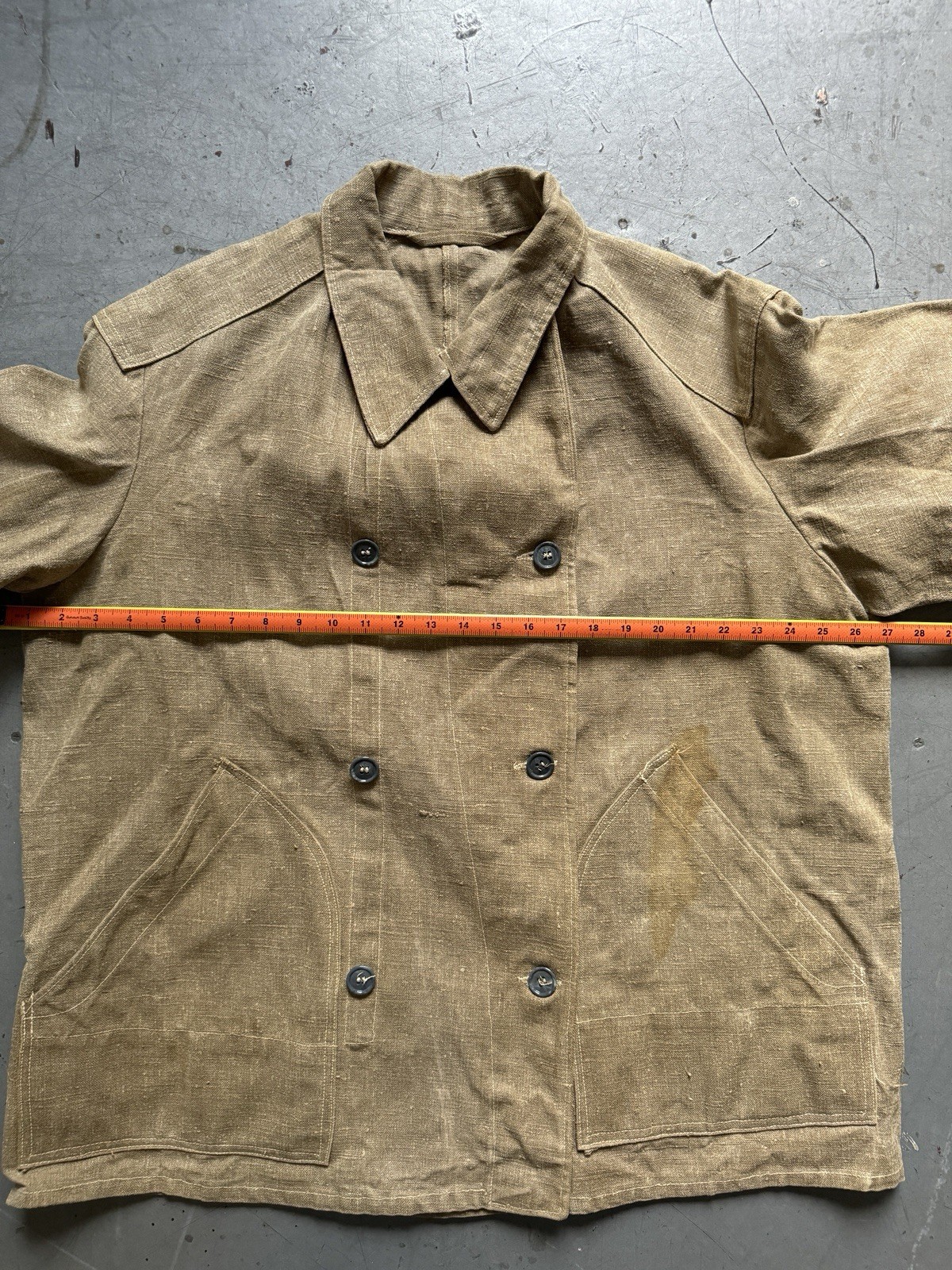 Soviet USSR vintage double breasted beige workwear French work chore jacket M