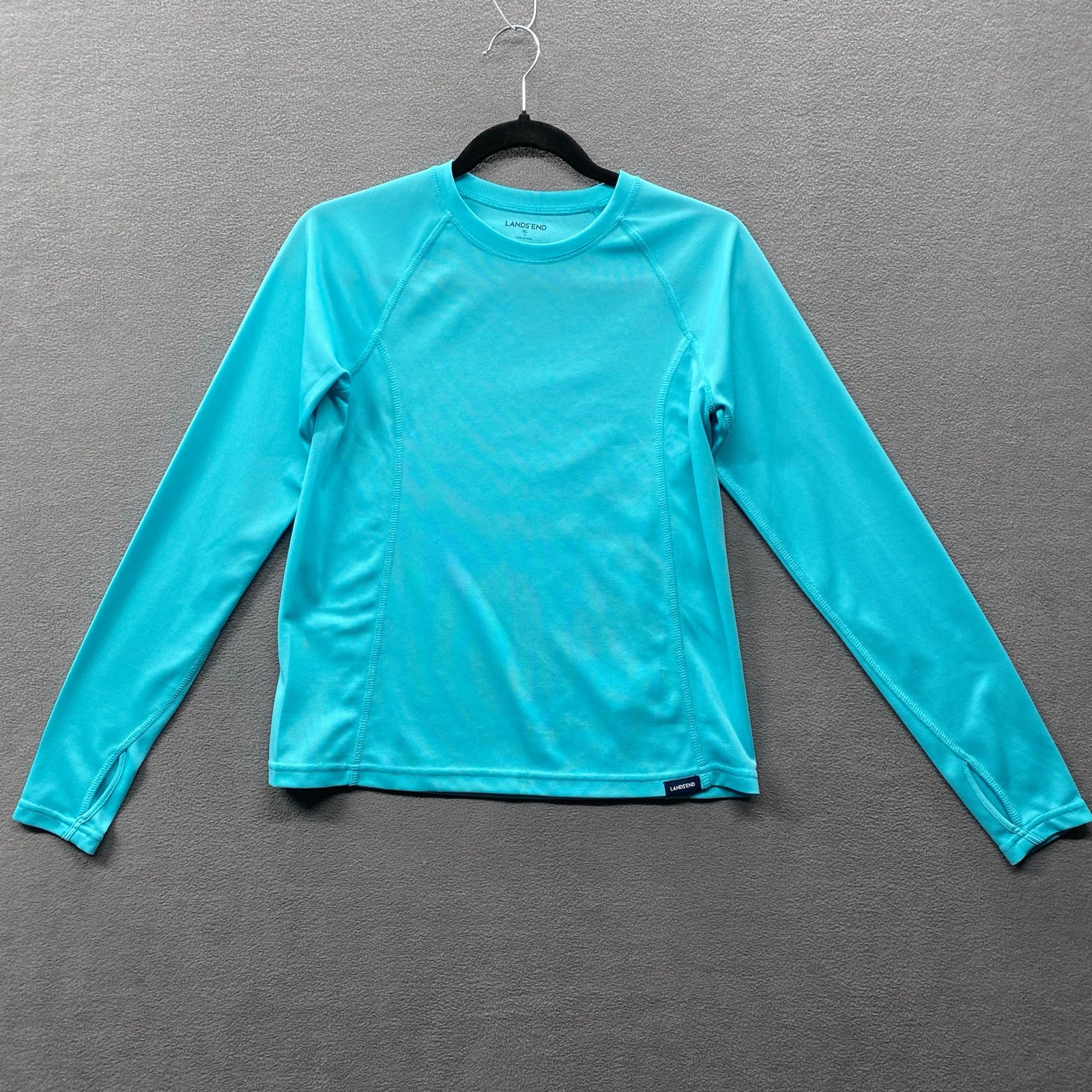 Lands End Swim Rash Guard Kids XL Blue Thumb Holes Long Sleeve Pool Beach