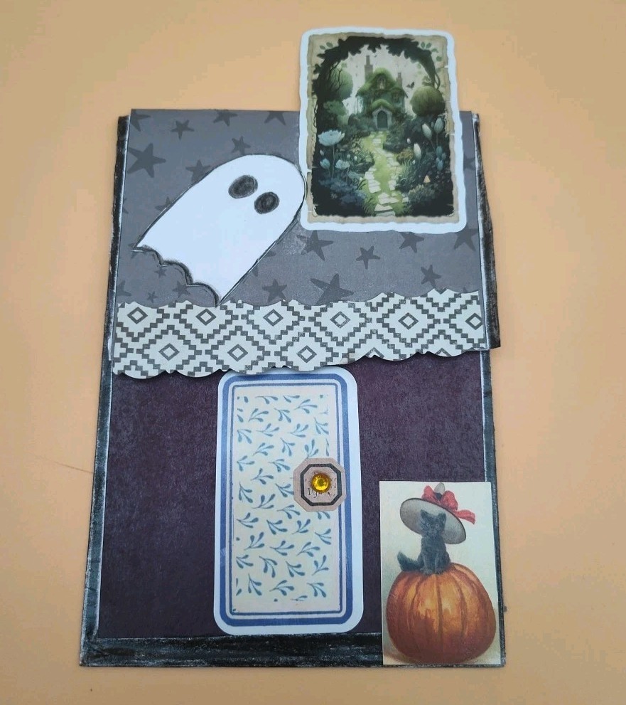 Handcrafted Halloween Themed Junk Journal Pocket Houses Lot 5