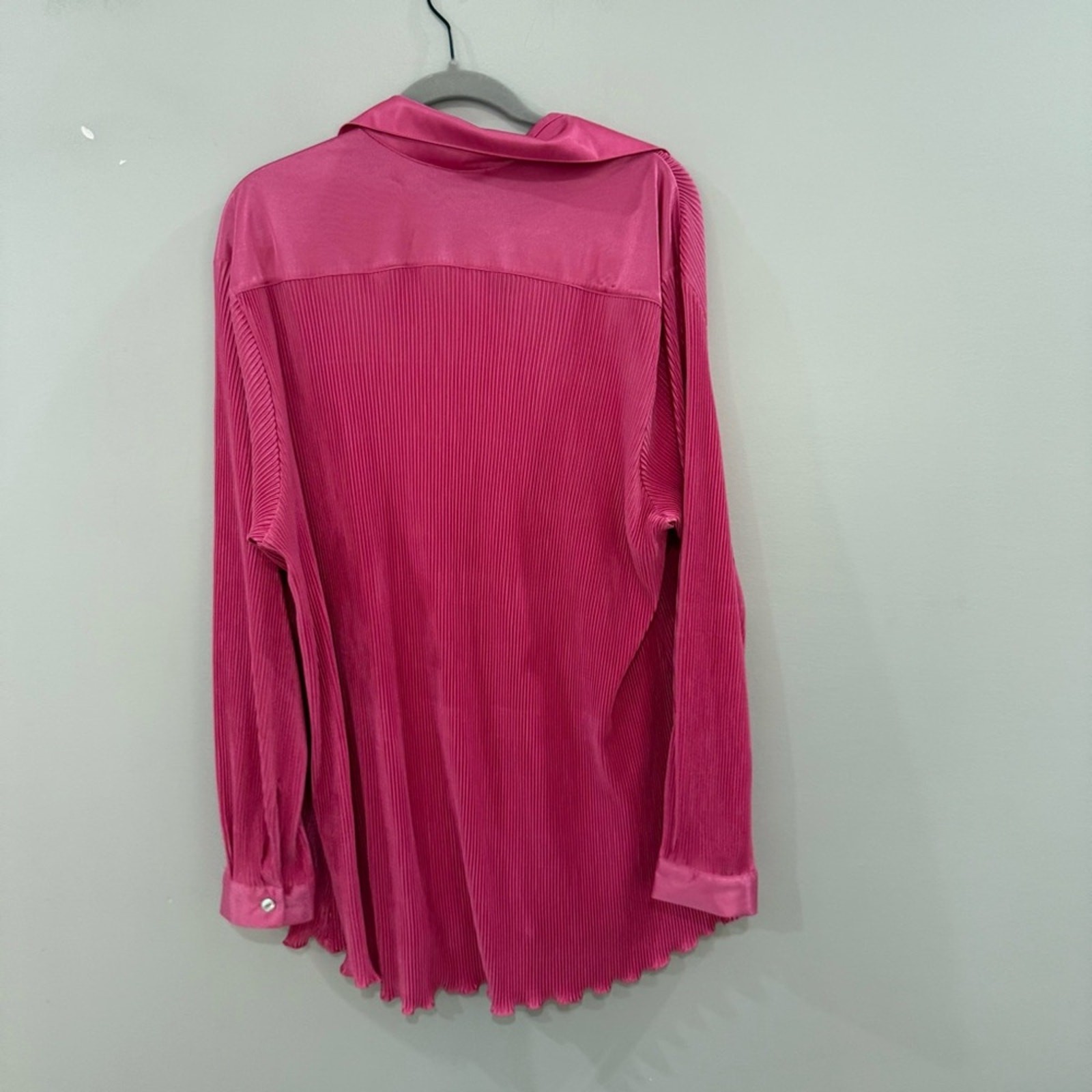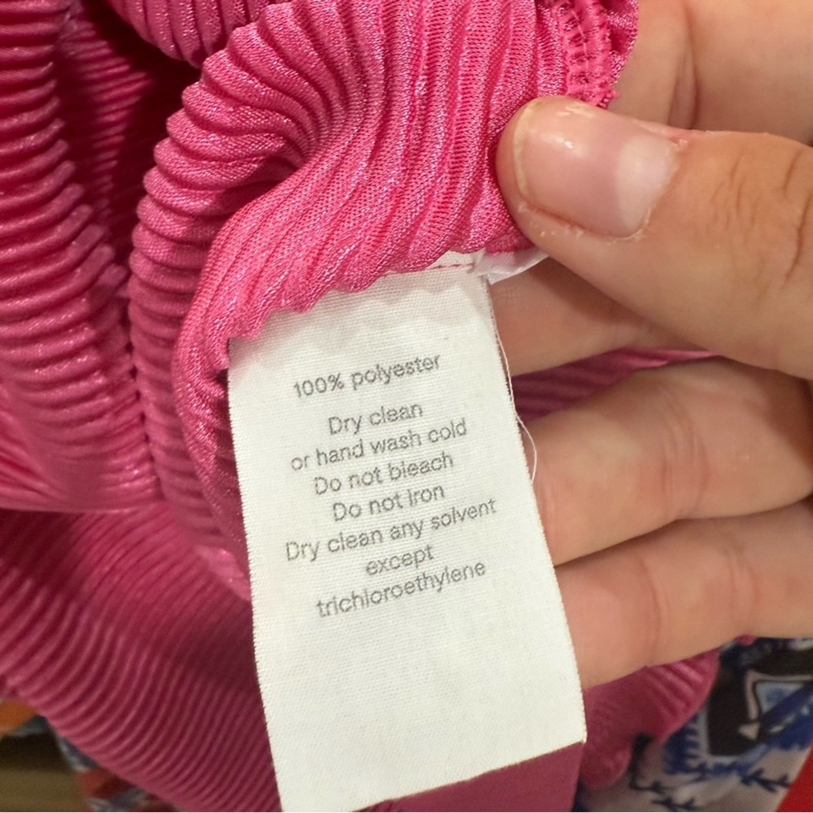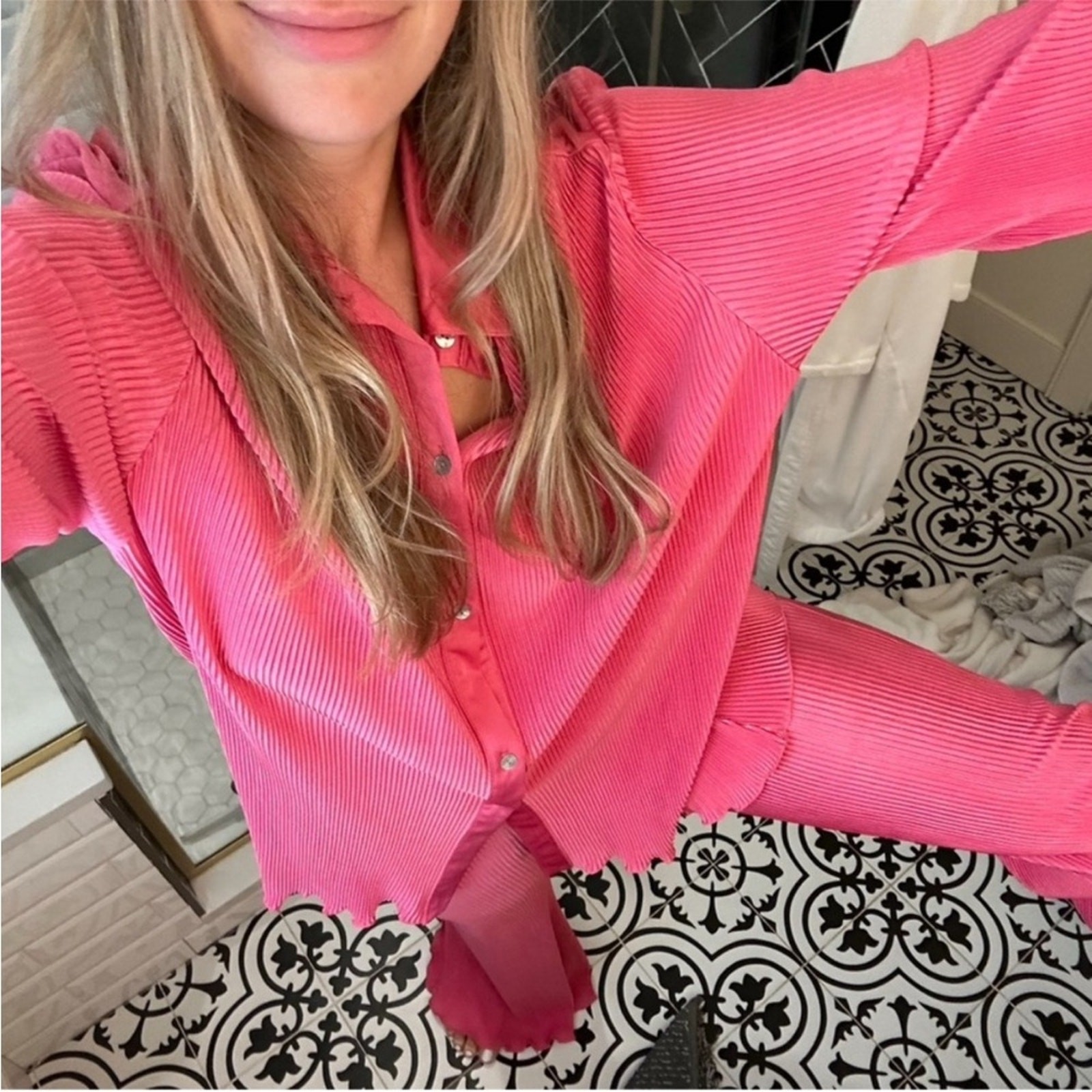 как выглядит SLEEPER Pajama SET Origami Pleated Button Down Top Wide Leg Pants in Hot Pink фото
